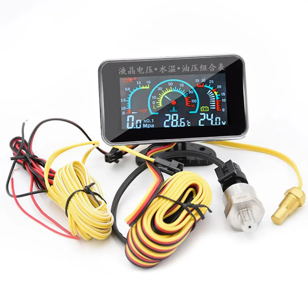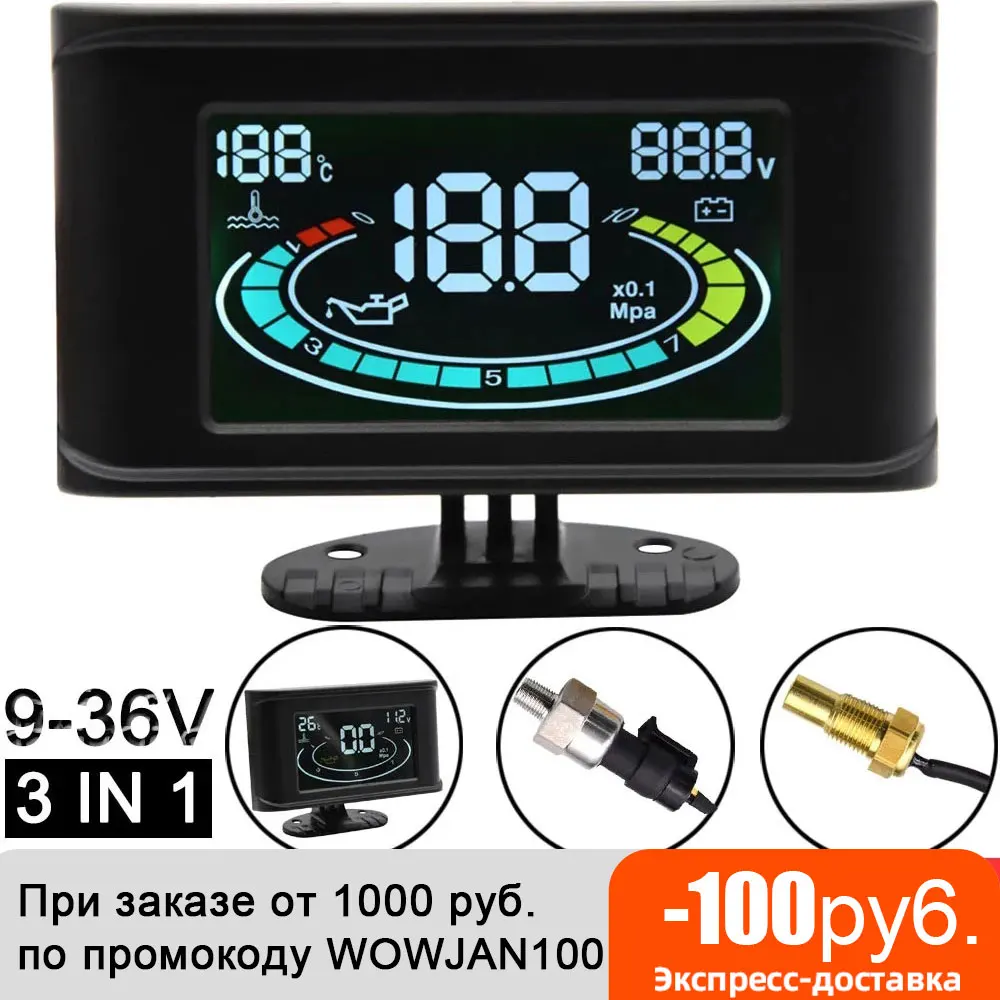 3 в 1 жидкокристаллический датчик давления масла для автомобиля, вольтметр, измеритель температуры воды + Датчик 10 мм 1/8 npt Универсальный 12 В 24 в авто