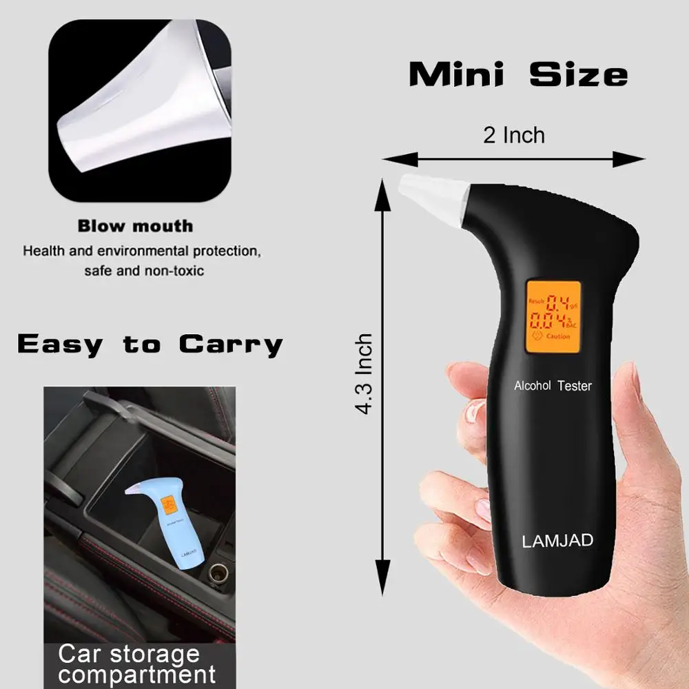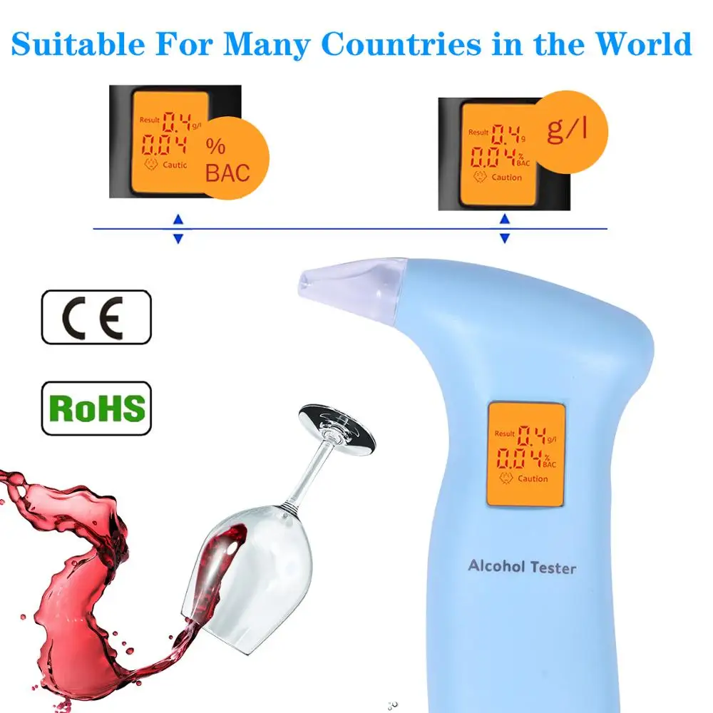 Цифровой спиртовой тестер с ЖК-дисплеем с 5 мундштуками, полицейское оповещение, устройство для тестирования спирта, анализатор дыхания, тест-детектор