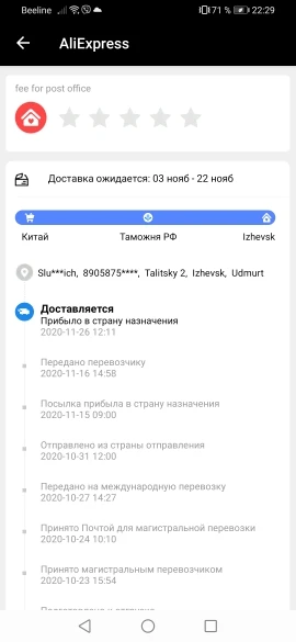Страна: RU Доставка: Cainiao Super Economy 29.11.2020