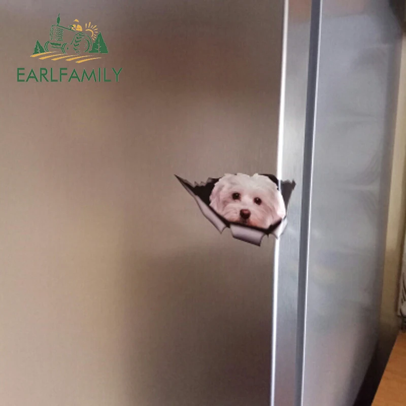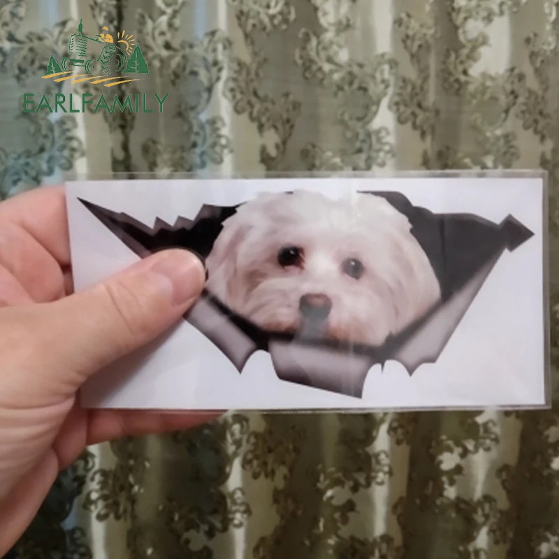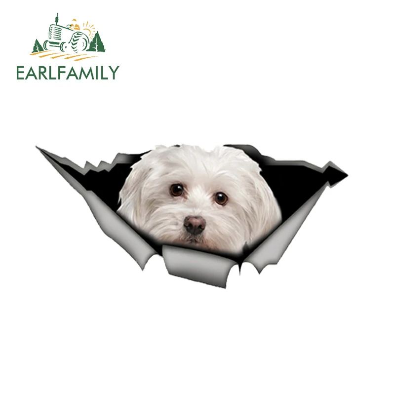 EARLFAMILY 13 см x 6 см милый мальтский автомобиль наклейка животное рваная металлическая наклейка Светоотражающая наклейка Водонепроницаемая автостайлинг