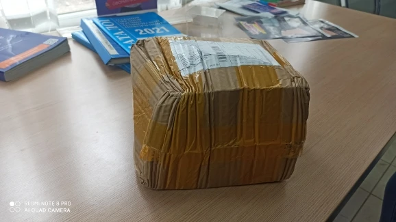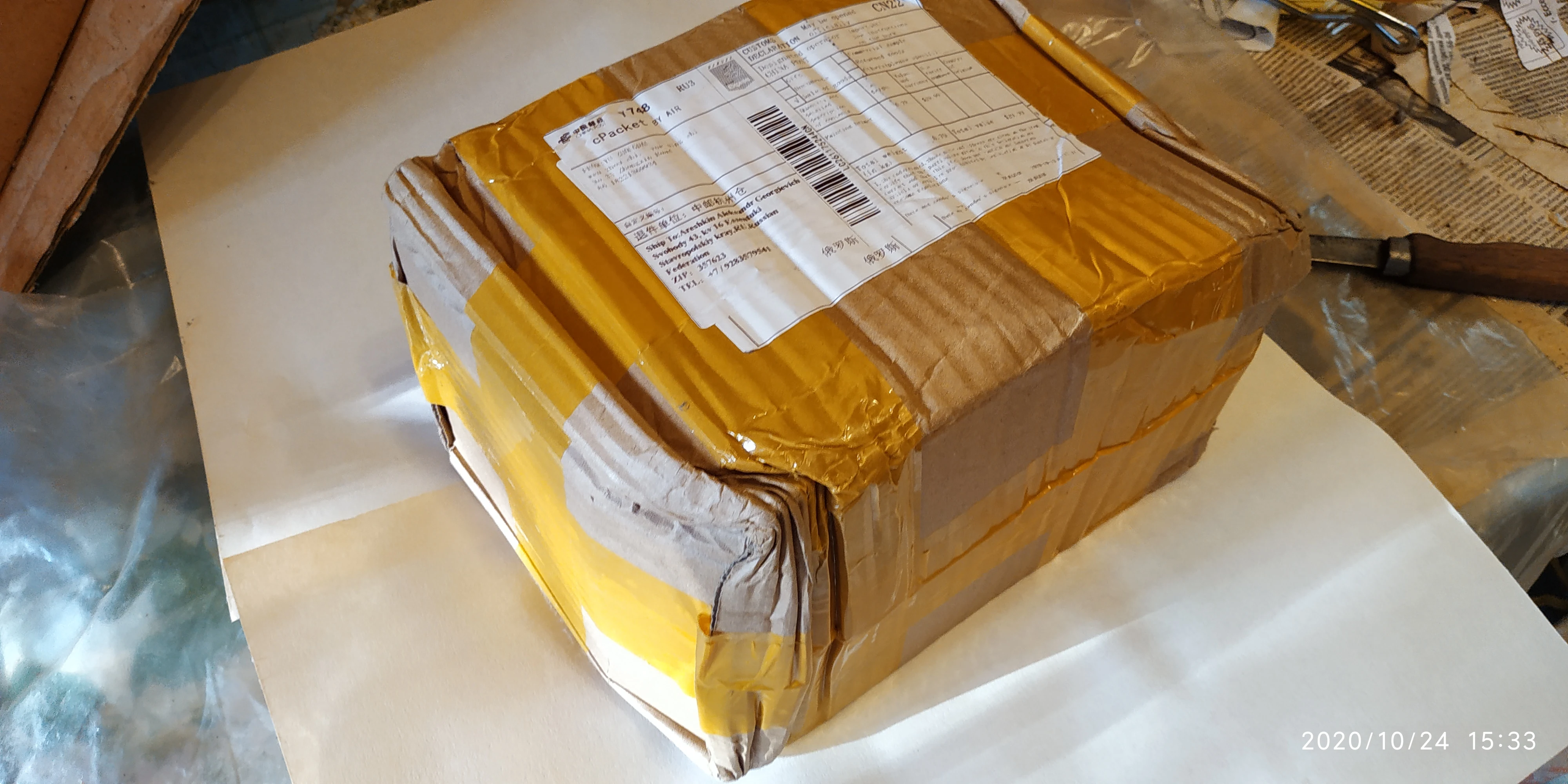 С виду всё ОК. Заказываю не в первый раз. Пришёл в картонной коробке, без воздушного бокса, но, на удивление, целый.