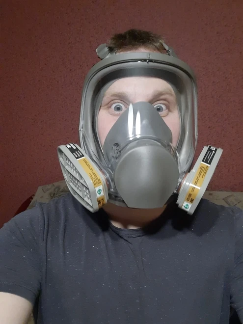 11 дней до МО. Маска норм, немного повоняла резиной, но не долго. От пыли защищает, с розовыми блинами.