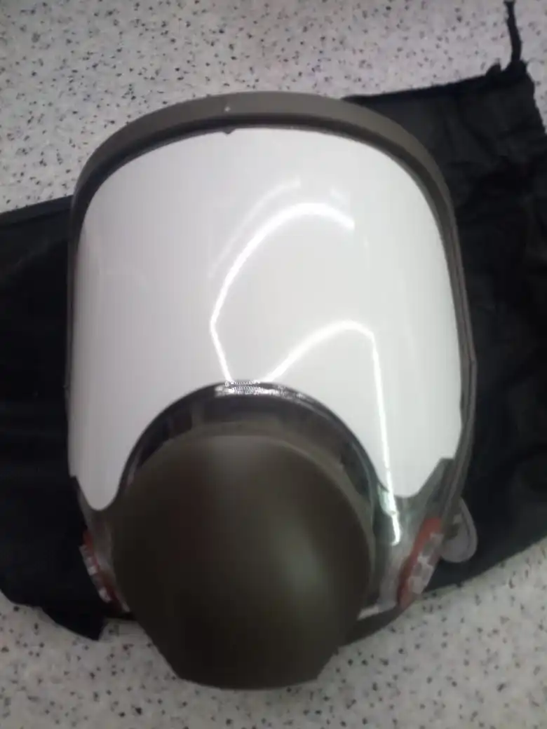 не пользовался оригиналом от 3М, но эта маска выглядит и сидит на фейсе отлично. в мастерской самое то. есть зацепки для быстрого снятия ремешков с головы.