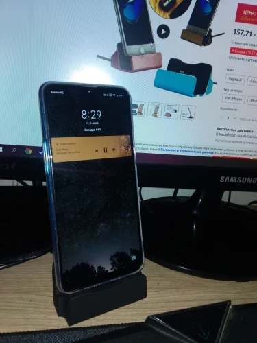 Хорошая станция. Материал приятный на ощупь. Работает. Телефон в чехле книжке не встаёт в неё, надо открывать чехол. Если бы был просто бампер, то все класс! До Челябинска посылка пришла за 16 дней.