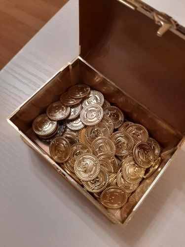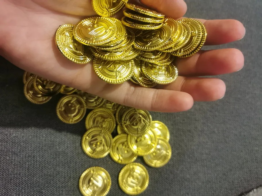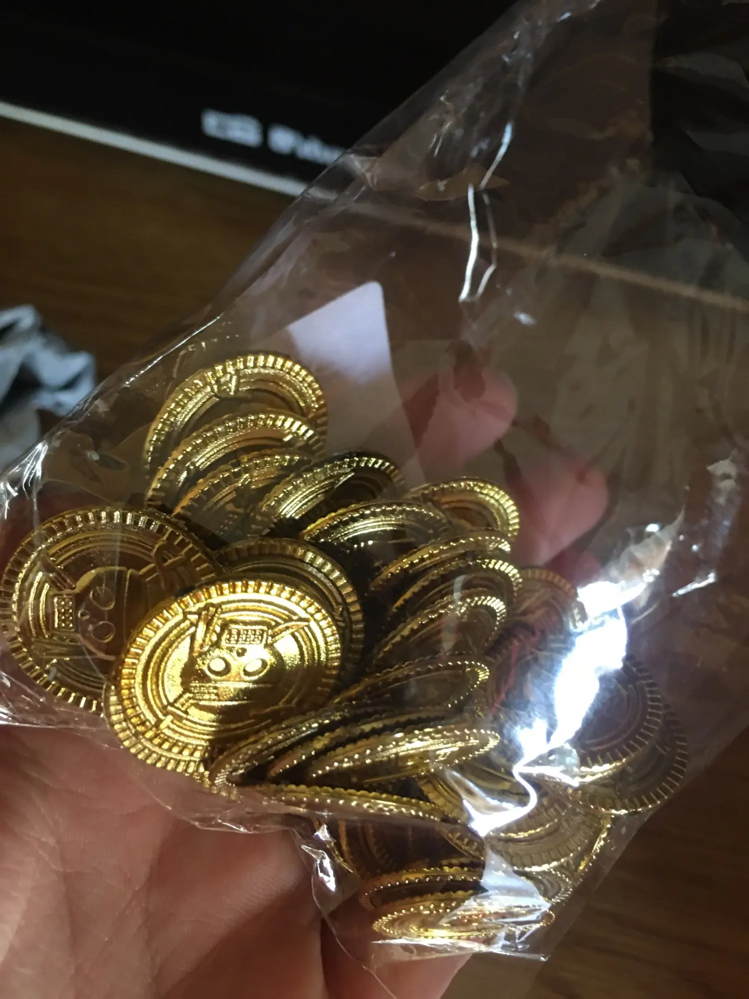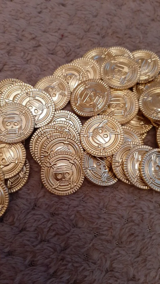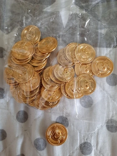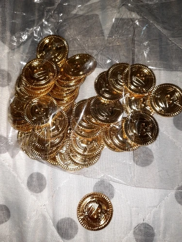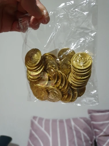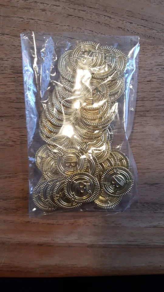 нормальные монетки, в пакете пришло 54 шт., лёгкие, дешёвый пластик. заказывал на замену монет игры шакал. по размеру на чуток больше чем в игре.