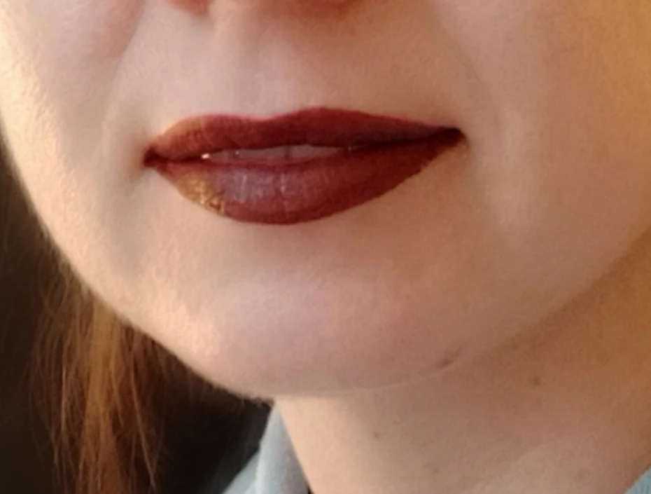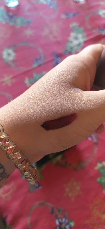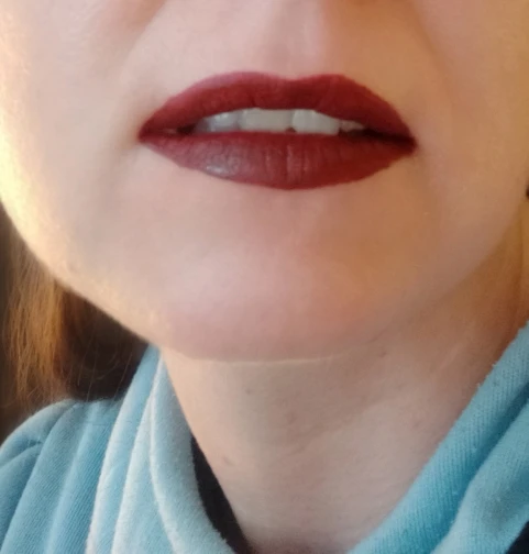Помада хорошая, но красить её надо в несколько слоев , чтобы не было проплешин и отличий цветов на губах. Кому нравятся тёмные оттенки ,то это для вас. Цвет темно-сливовый. Водостойкая, даже мицеллярная вода не смывает помаду. Очень тяжело смывается.