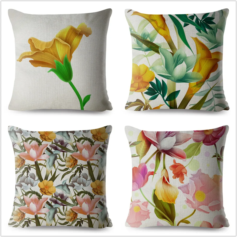 Красивый цветочный чехол для подушки с принтом 45*45 см Квадратные наволочки для подушки бежевые льняные наволочки наволочка для домашнего декора