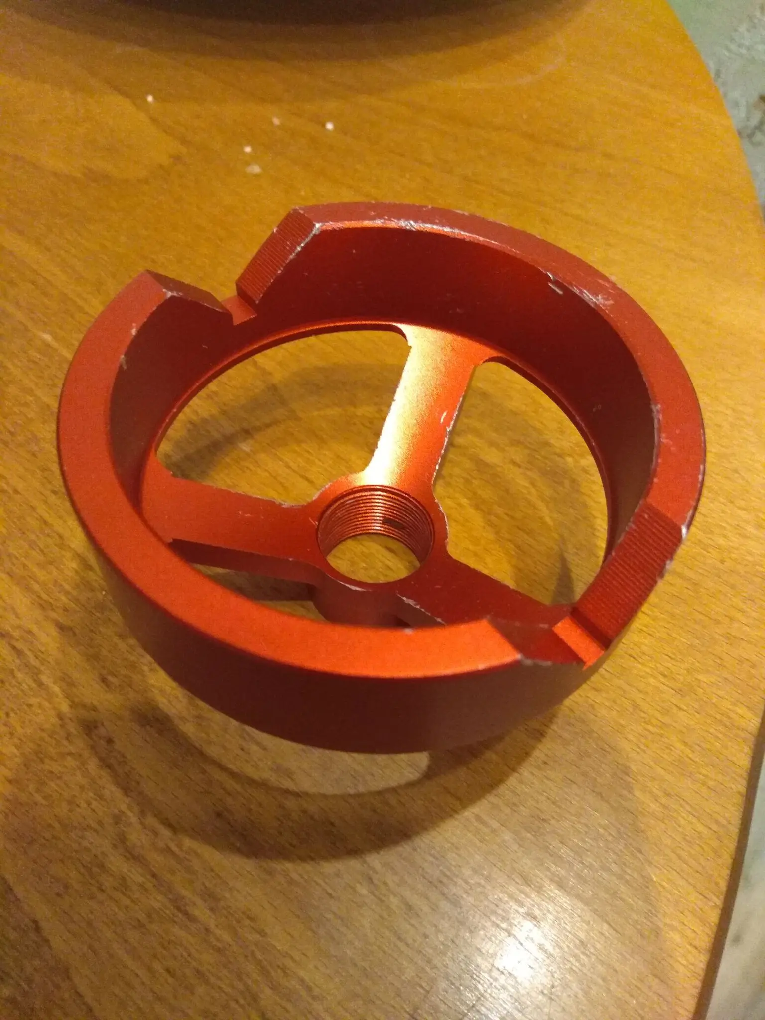пришло быстро. описанию соответствует. правд, длина сверла должна будет учитывать размеры сего девайса, и в принципе можно направляющую ввинчивать с обратной стороны. Высота от плоскости до верхушки насадки 58мм (головка насадок высотой 12мм), угловая выемка экономит около 1см высоты. Общий диаметр 78мм, алюминий толщиной 6мм. Фаски сняты не везде, есть острые рёбра (аккуратные, без заусенцев). Досталась за 1580 ₽ на распродаже 11.11 (уже с купоном 140р.).