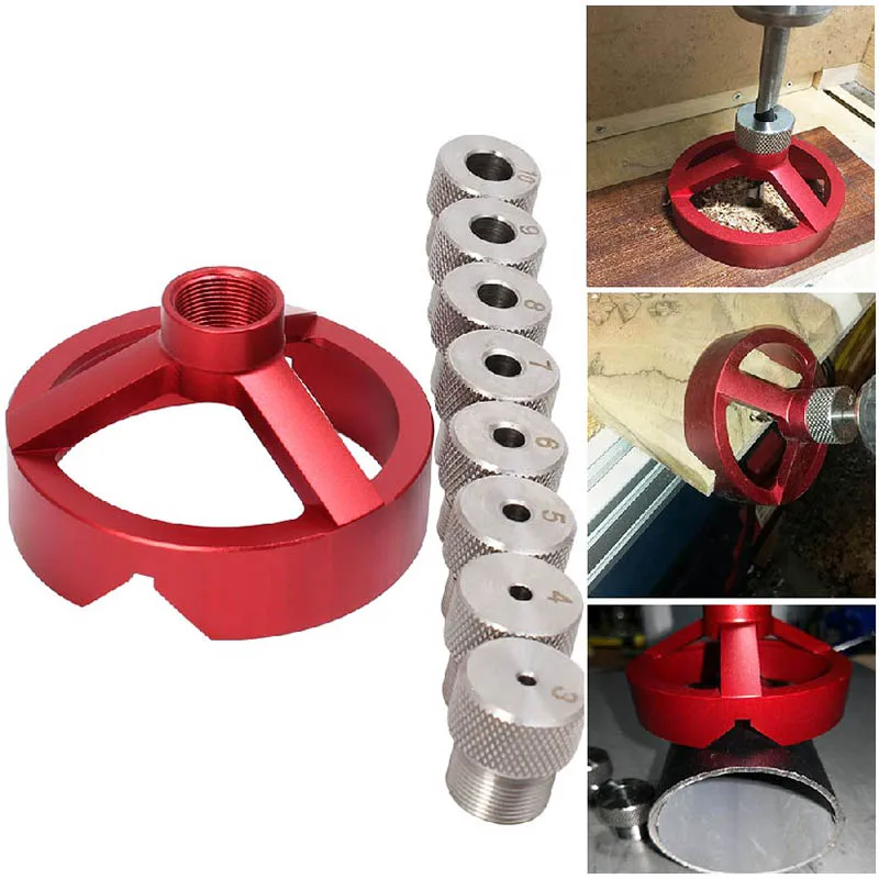 Этот инструмент выглядит красиво, но почти бесполезно. Он настолько большой, что вам нужны очень длинные сверла для использования. Плохой дизайн. Дизайнер упустили цель этого инструмента. Основная часть дрели находится внутри джига, в основном в маленьком диаметре дрели. Я буду использовать каждую вилку отдельно от джига. Не рекомендуется.
