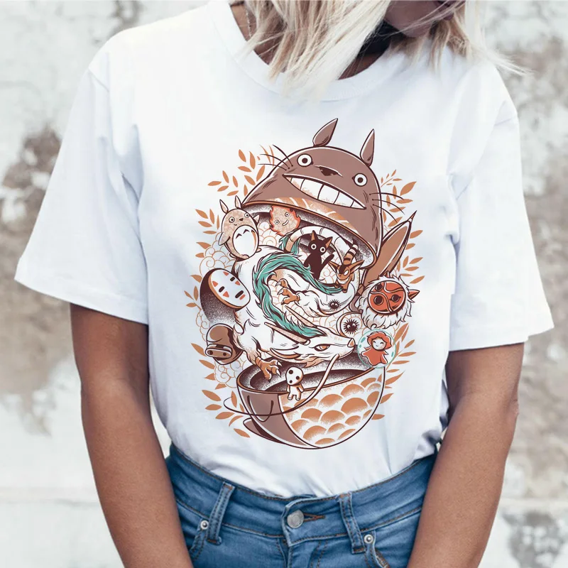 Женская футболка totoro, топ, футболки, футболка, футболка для студии ghiспектр kawaii 90-х, графический стиль Харадзюку, Миядзаки Хаяо, женская мода