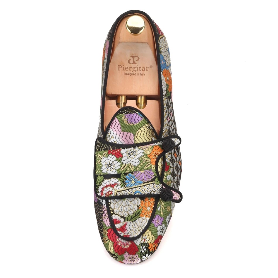 Piergitar многоцветные жаккардовые шелковые моновы мокасины в белом стиле с черными пуговицами ручной работы, мужские дымчатые тапочки размера плюс