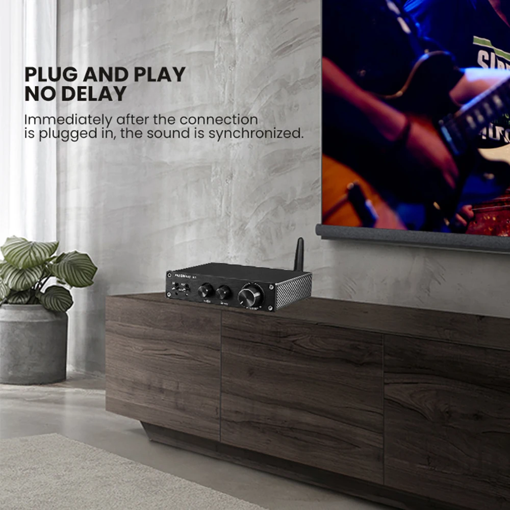 1. С двумя входами: 1 группа * RCA для проводного ввода аналогового сигнала; Беспроводной вход Bluetooth может легко подключаться к мобильный телефон или компьютер с Bluetooth устройством. 2. Bluetooth принимает модуль BTM303 5,0 и чип QCC3003, поддерживает A2DP,AVRCP,HFP,AAC,I2S и так далее. Использование 16M SPI флэш-чип памяти, дальнейшее расстояние и более стабильная для обеспечения передачи декодирования без потерь. Декодирующая часть использует чип 1543. 3. С функцией контроля высоких частот и басов, вы можете свободно настроить на основе вашего собственного стиля прослушивания и различных аудиоустройств. 4. Использование двух чипов TPA3116D2, предлагая Выход 100 Вт для каждого канала, может управлять пассивными динамиками ниже 4Ω 200 Вт и 8Ω 150 Вт. 5. Принятие новой схемы защиты динамиков для защиты ваших динамиков от повреждений, улучшенная Бесшумная конструкция включения/выключения, с защитой от перегрева и перегрузки. 6. Высококлассный дизайн и восхитительный внешний вид: CNC обработанный алюминиевый корпус, процесс окисления и лазерная гравировка; Позолоченный RCA входной интерфейс, большой теплоотвод для обеспечения его долгой стабильной производительности.