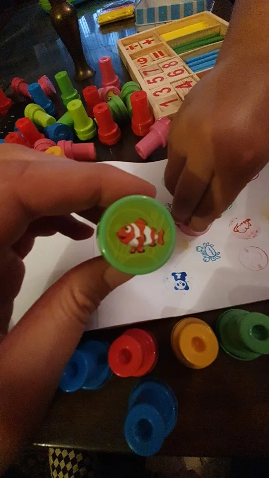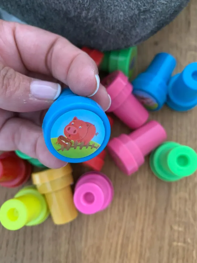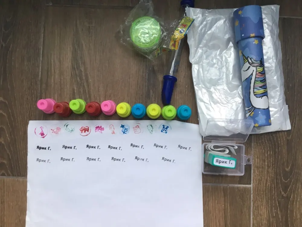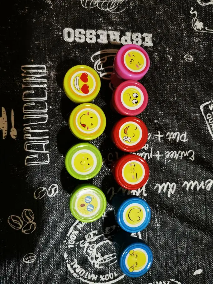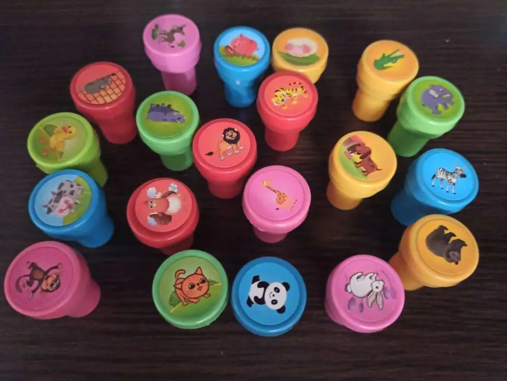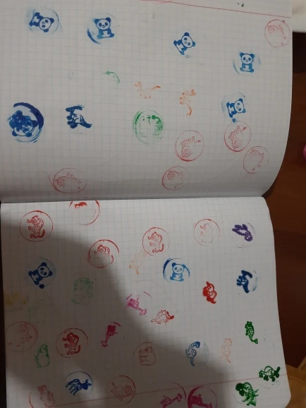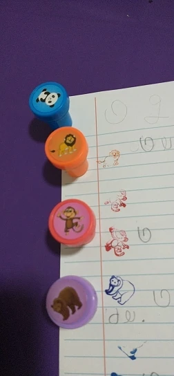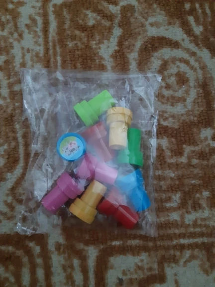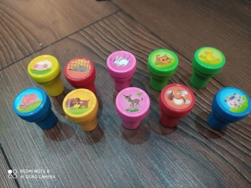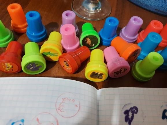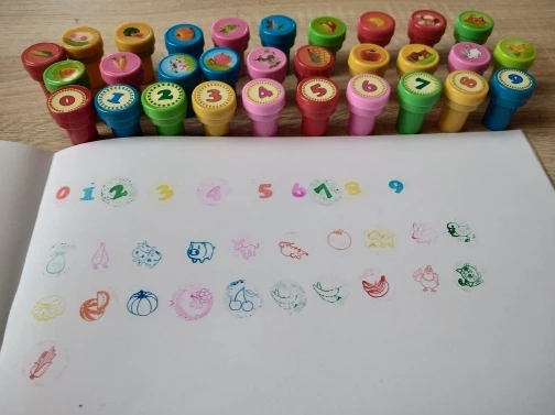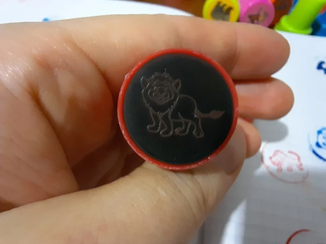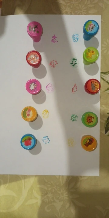 Штампики пришли в срок, были просто насыпаны в почтовый пакет. Парочка штампов (из 20) плохо оставляет отпечаток, мало чернил. На одном штампе чернила аж вылились, в крышке и по краям штампа (фото). Небольшого размера, изображения получаются маленькие. Один штамп пришёл с трещиной. Ребёнку понравились!
