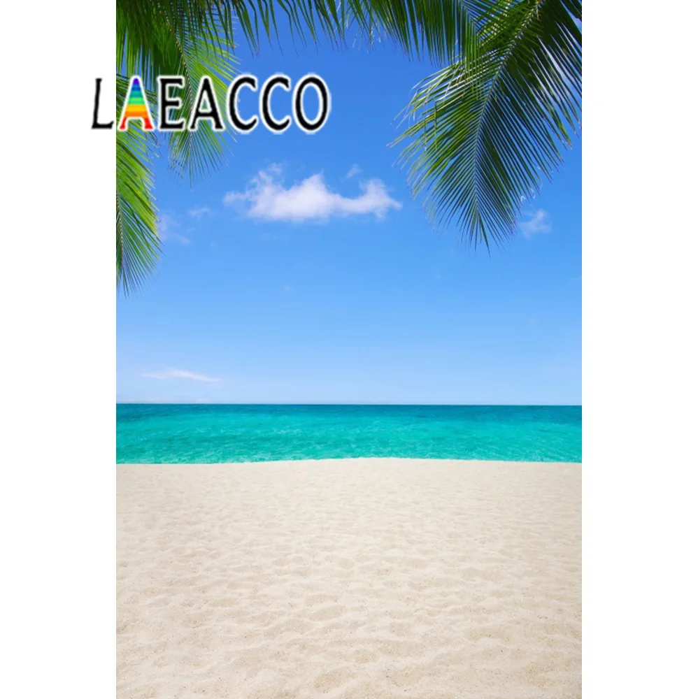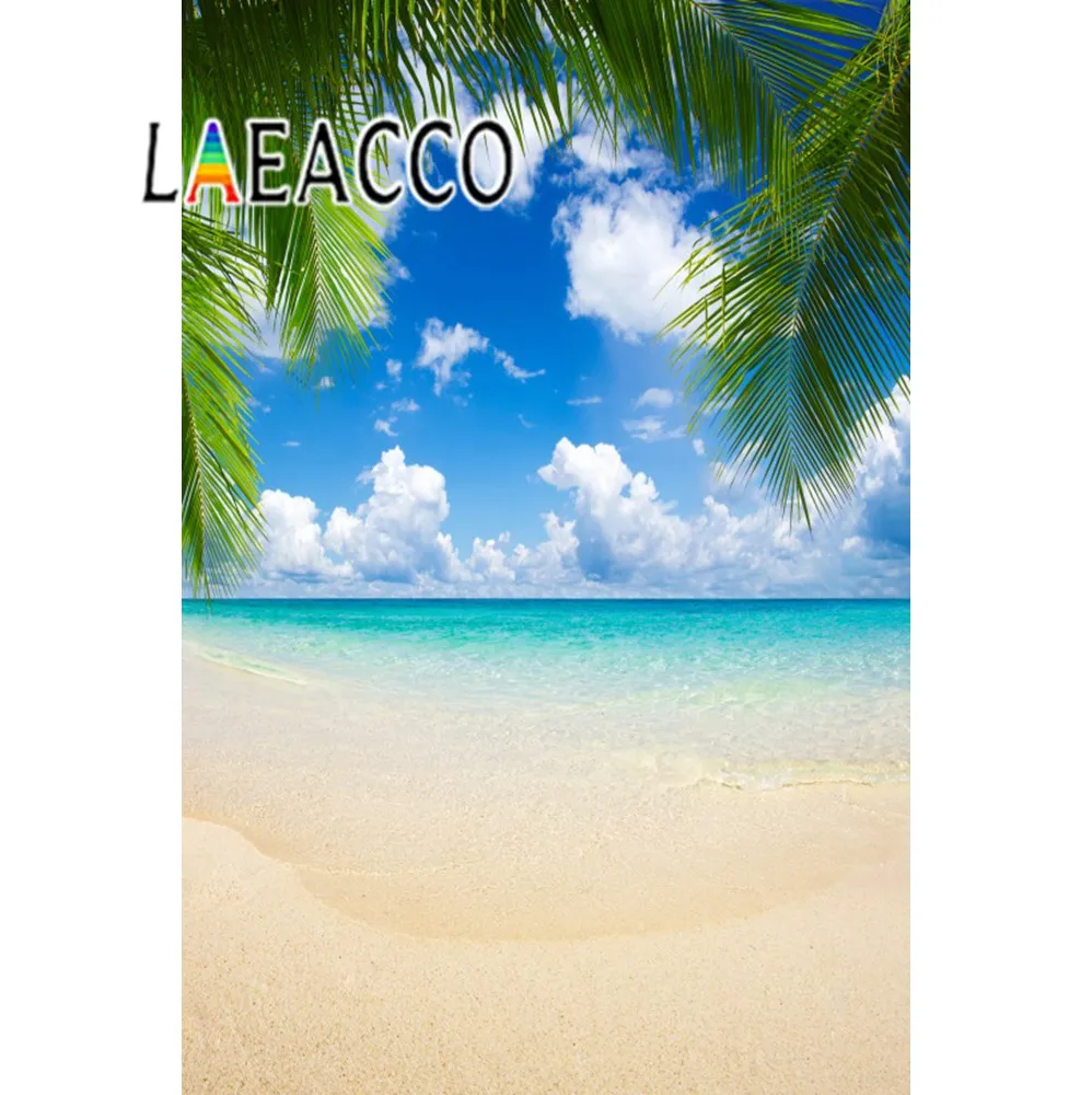 Фон для фотосъемки детей с изображением летних тропических пальм дерева моря пляжа песка облачного синего неба