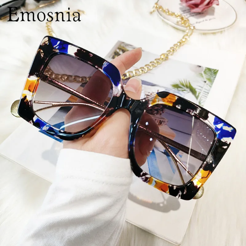 Солнцезащитные очки с синими цветами женские, роскошные брендовые дизайнерские винтажные солнечные очки в большой пластиковой оправе, с защитой UV400