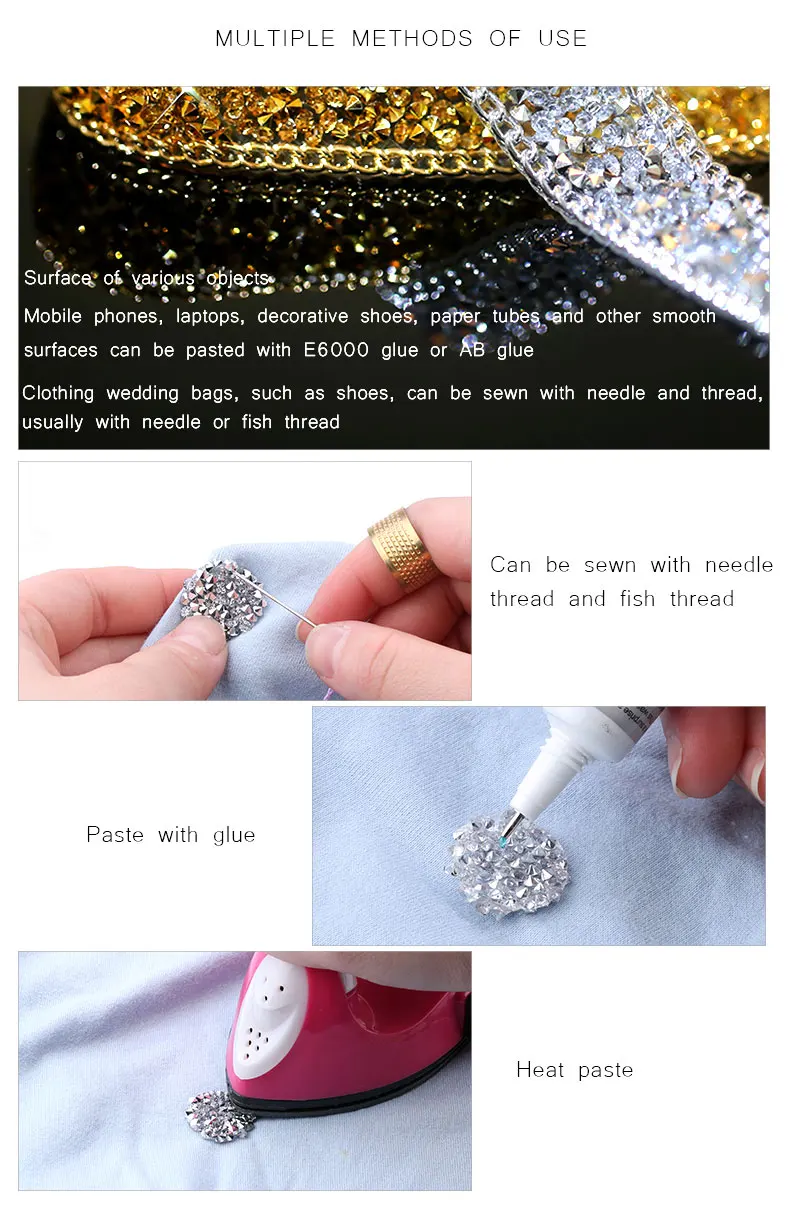 1,5 см модное украшение из горного хрусталя, 1 ярдЛот Смола Кристалл украшения отделка, обувь окантовка шляпка блестящие украшения QIAO
