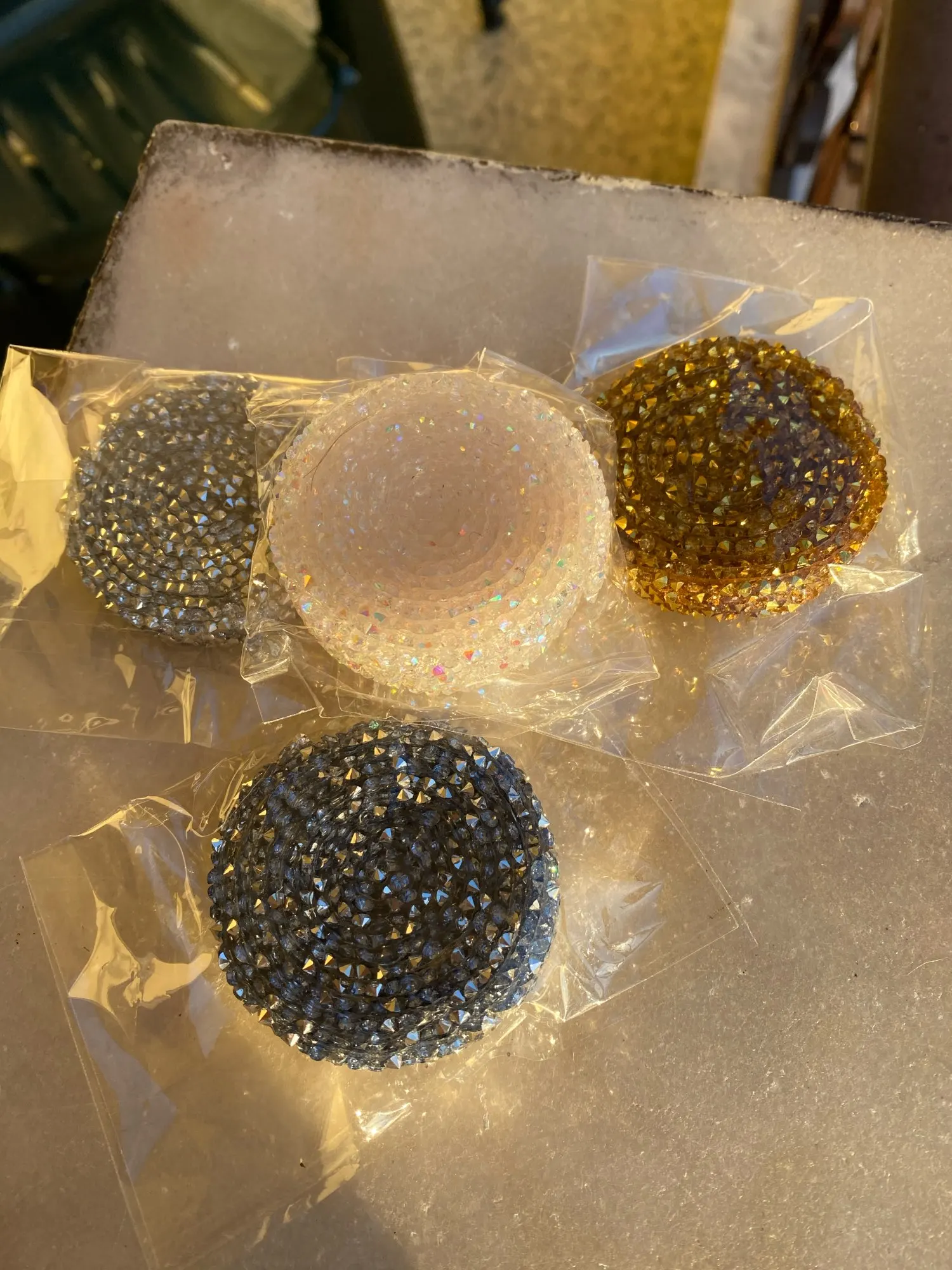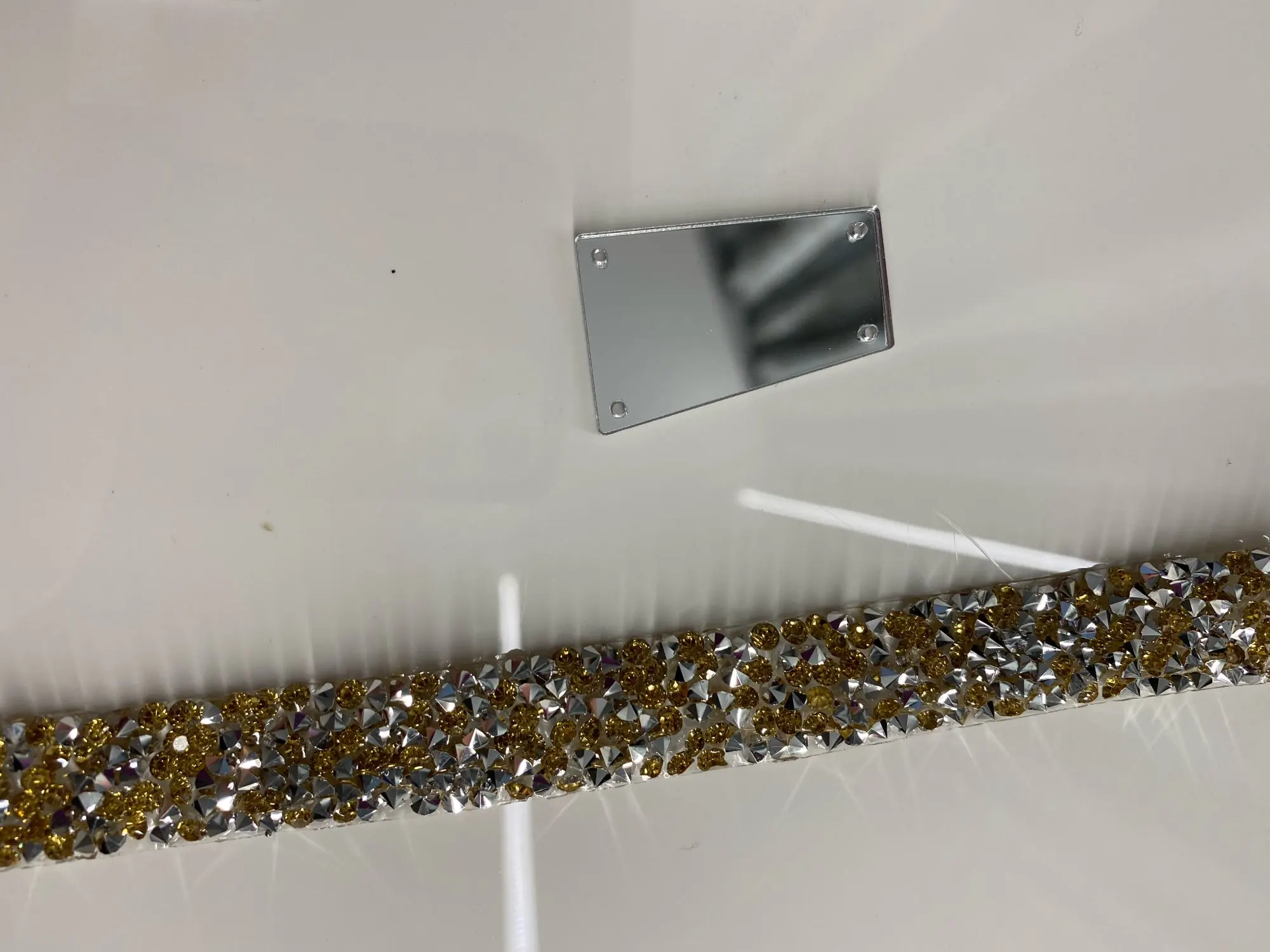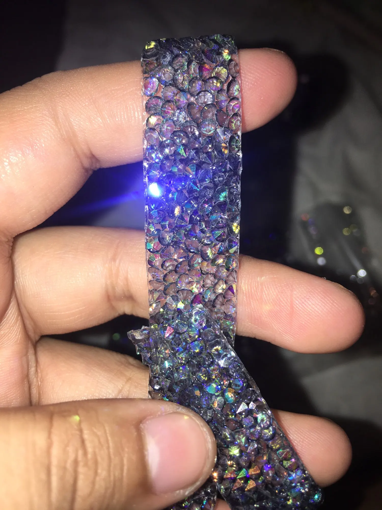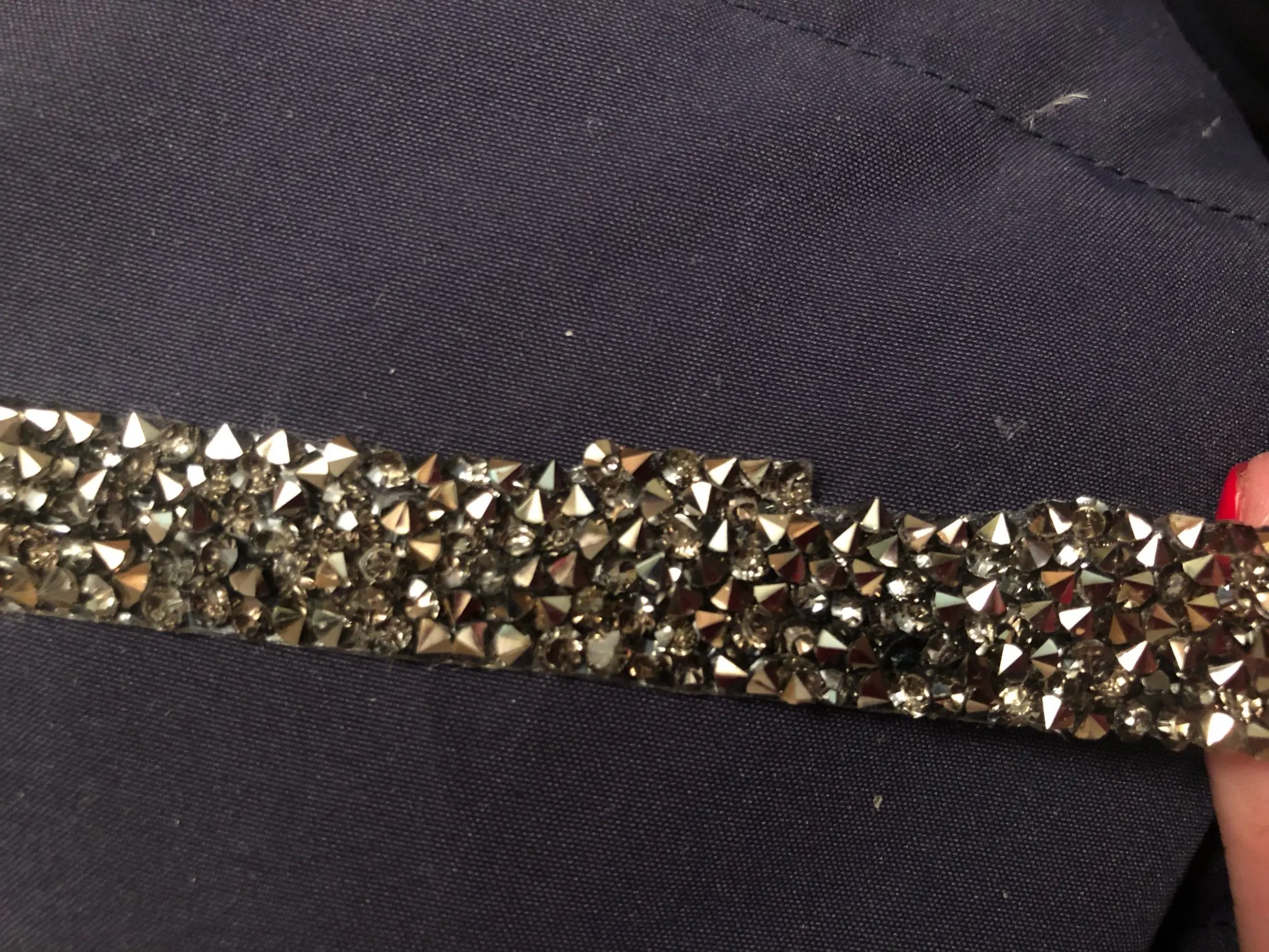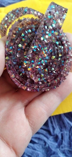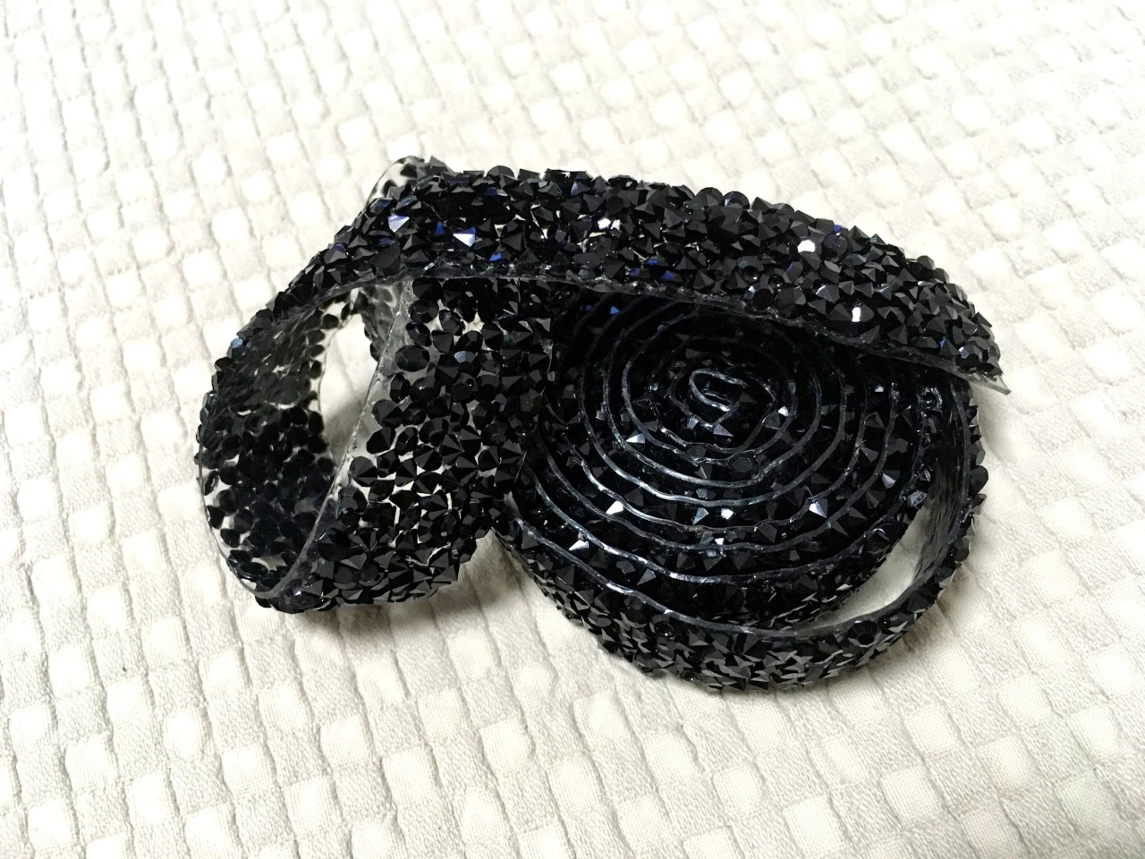 Хорошая лента, ещё не использовала, думаю, будет очень удобно. Она на толстой клеевой основе, то есть камушки утоплены в клееву полоску. Можно разрезать по своему желанию, если, к примеру, понадобятся элементы неправильной формы. Основной блеск придают золотистые биконусы, черные камушки не такие яркие, замечаю легкую мутность от клея, но это придирки. Отличный товар, хороший ассортимент у магазина