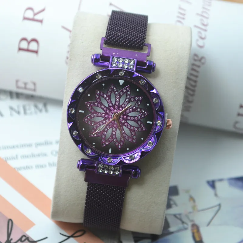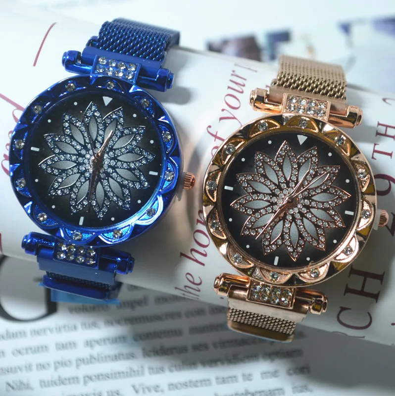 Новые Лидирующий бренд розовые Золотые женские сетчатые магнитные часы с пряжкой звездное небо женские кварцевые часы Relogio FemininoГорячее предложение
