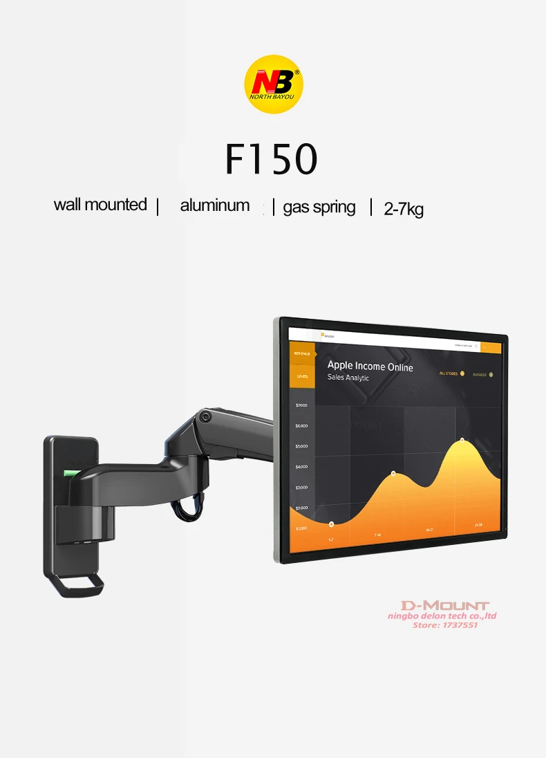 Настенный экран для монитора NB F150, 2-7 кг, 100x100, из алюминия, с пневматической пружиной, 13-27 дюймов, настенный держатель для телевизора