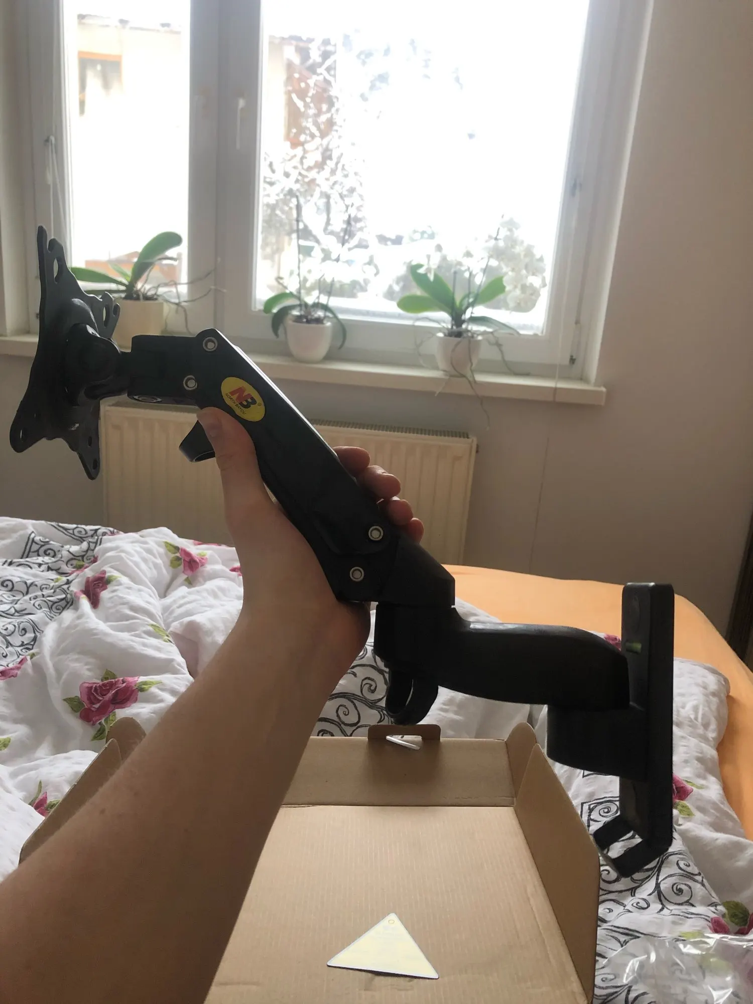 Замечательный кранштейн, пришёл быстро. Доставили прям домой. Фото добавлю как повешу монитор