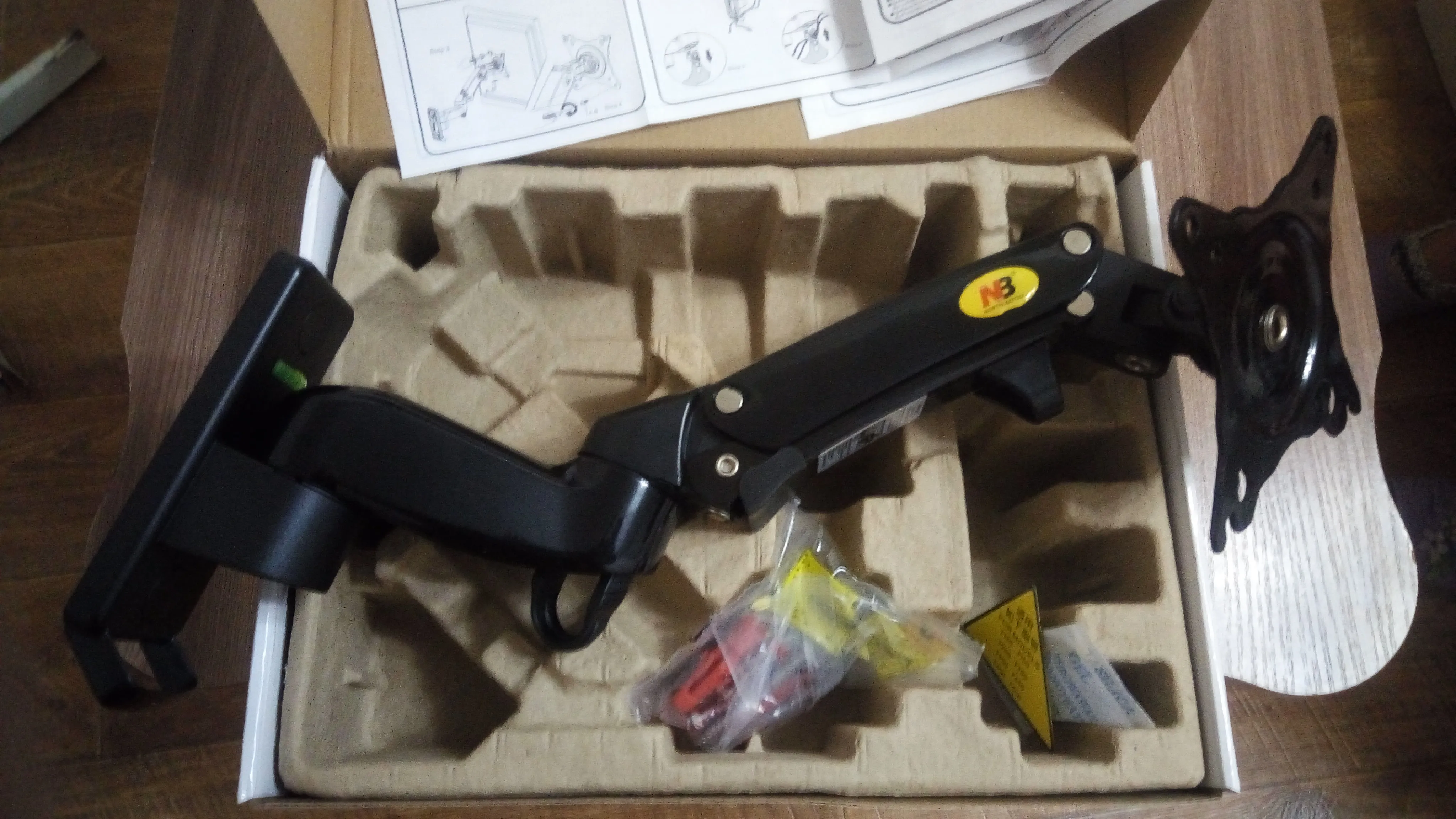 Без преувеличения, великолепного качества кронштейн. Это второй, первый брал для 34' монитора. Конструкция массивная, с качественными материалами. В наборе всё необходимое для установки (кроме перфоратора ). Для 3кг. кухонного 24' LG, регулировочный винт выкрутил до упора. Доставили СДЕКом до квартиры. Брал за 2195₽. Это яркий пример качества по адекватно-сопоставимой стоимости, аналог с компьютерюниверс от 8000₽. Однозначно рекомендую к приобретению.