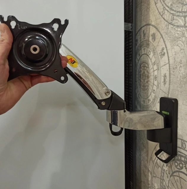отличное крепление. Есть регулировочный болт для мониторов разной массы. При выборе точки крепления на стене учитывайте, что в максимально компактном состоянии (ближе всего к стене) центр монитора будет в 3 - 4 сантиметрах от отверстий в стене.