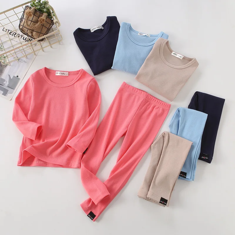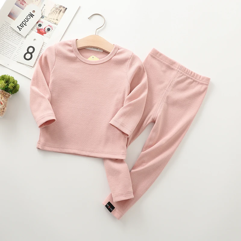 Модные детские облегающие пижамы в рубчик пижамы для маленьких девочек и мальчиков детская одежда осенне-зимний комплект для малышей, мягкие удобные 2 предмета