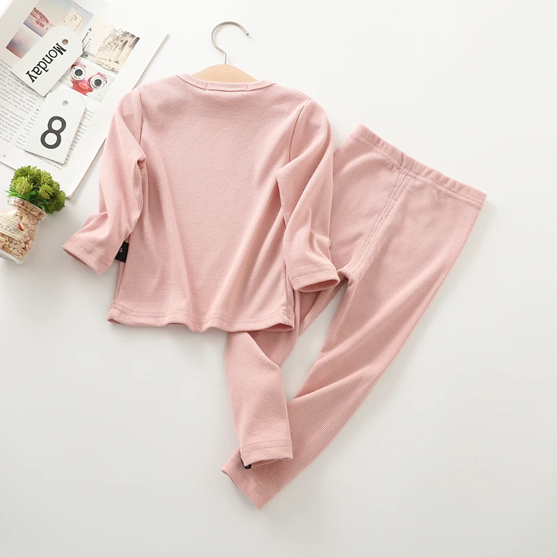 Модные детские пижамы в рубчик пижамы для маленьких девочек, детская одежда для мальчиков осенне-зимний комплект для малышей из 2 предметов