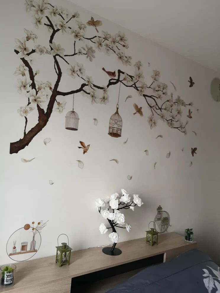 187*128 см большой Размеры дерево наклейки на стену с изображением птиц цветочный декор дома обои для Гостиная Спальня DIY виниловые номера украшения