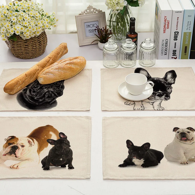 1 шт. салфетка с рисунком французского бульдога, коврик для обеденн...