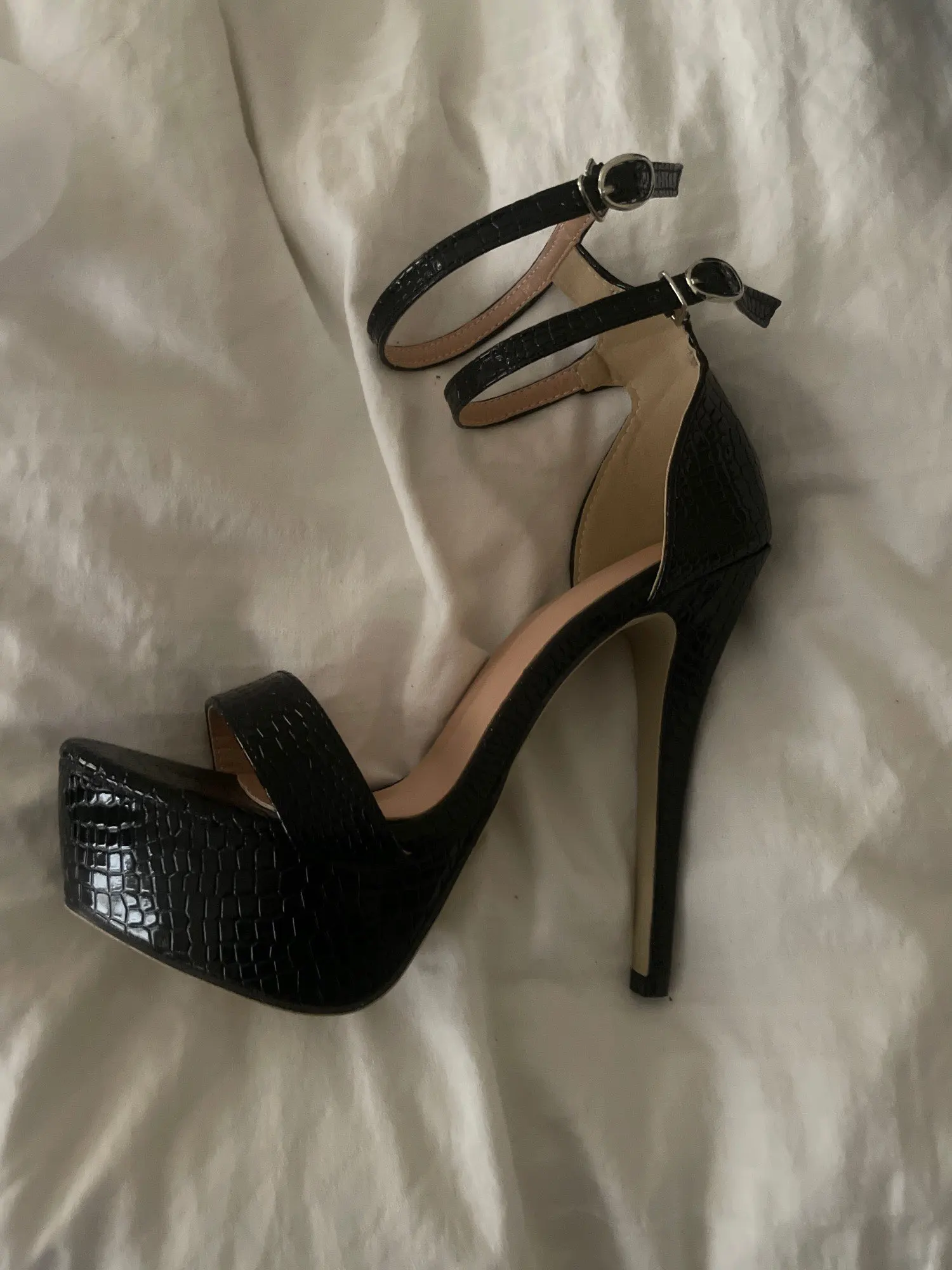 Eilykenлетние модные женские босоножки со змеиным узором пикантные вечерние туфли-гладиаторы на очень высоком каблуке с пряжкой и ремешком с открытым носком для танцев на шесте