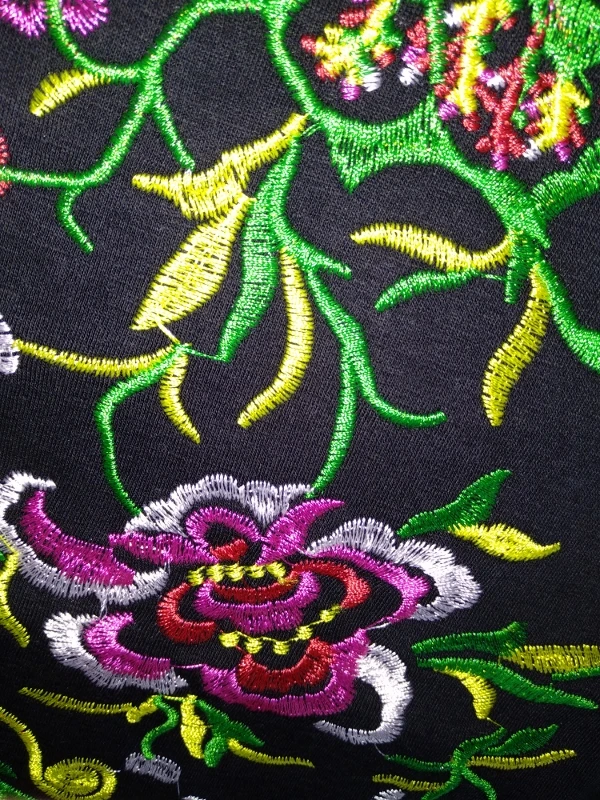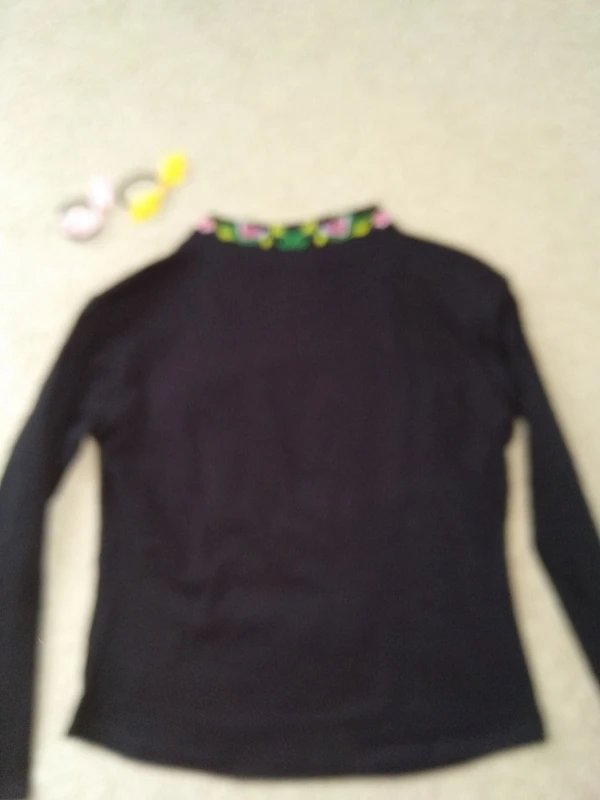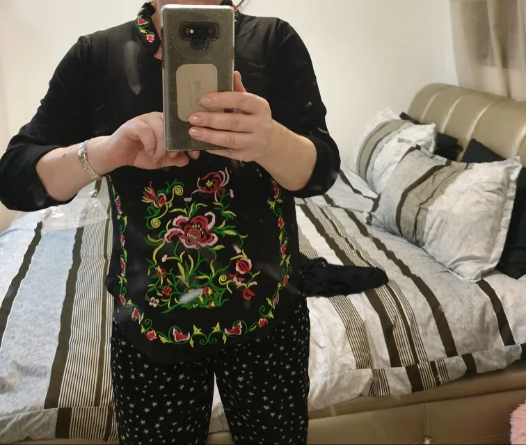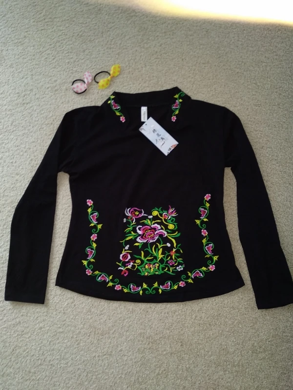 Довольны этим топом! Доставка быстрая, я заказал 23/11/20 и получил 08/12/20 в Holland Ю. Размер 5XL идеально подходит для размера EUR 40/42 (с большим бюстом) и, самое главное, рукава достаточно длинные для меня (рост 176 см). Таблица размеров в см верна, поэтому внимательно прочитайте. Цвета цветов на черном контрастном фоне. Вышивка-это настоящая аппликация, а не просто принт. Ткань как на картинке, приятная на ощупь и мягкая, как тонкая толстовка. Не прозрачный. Подходит для всех сезонов, кроме зимы. Единственное разочарование в том, что вышивка не такая большая, как на картинке. Вышивка не подходит для подмышек и не закрывает грудь. Но все еще очень мило. Может быть подарком, есть китайские бирки. Спасибо продавцу за подарки (2 резинка для волос с бантом). Я рекомендую. Я сделаю несколько фотографий позже.