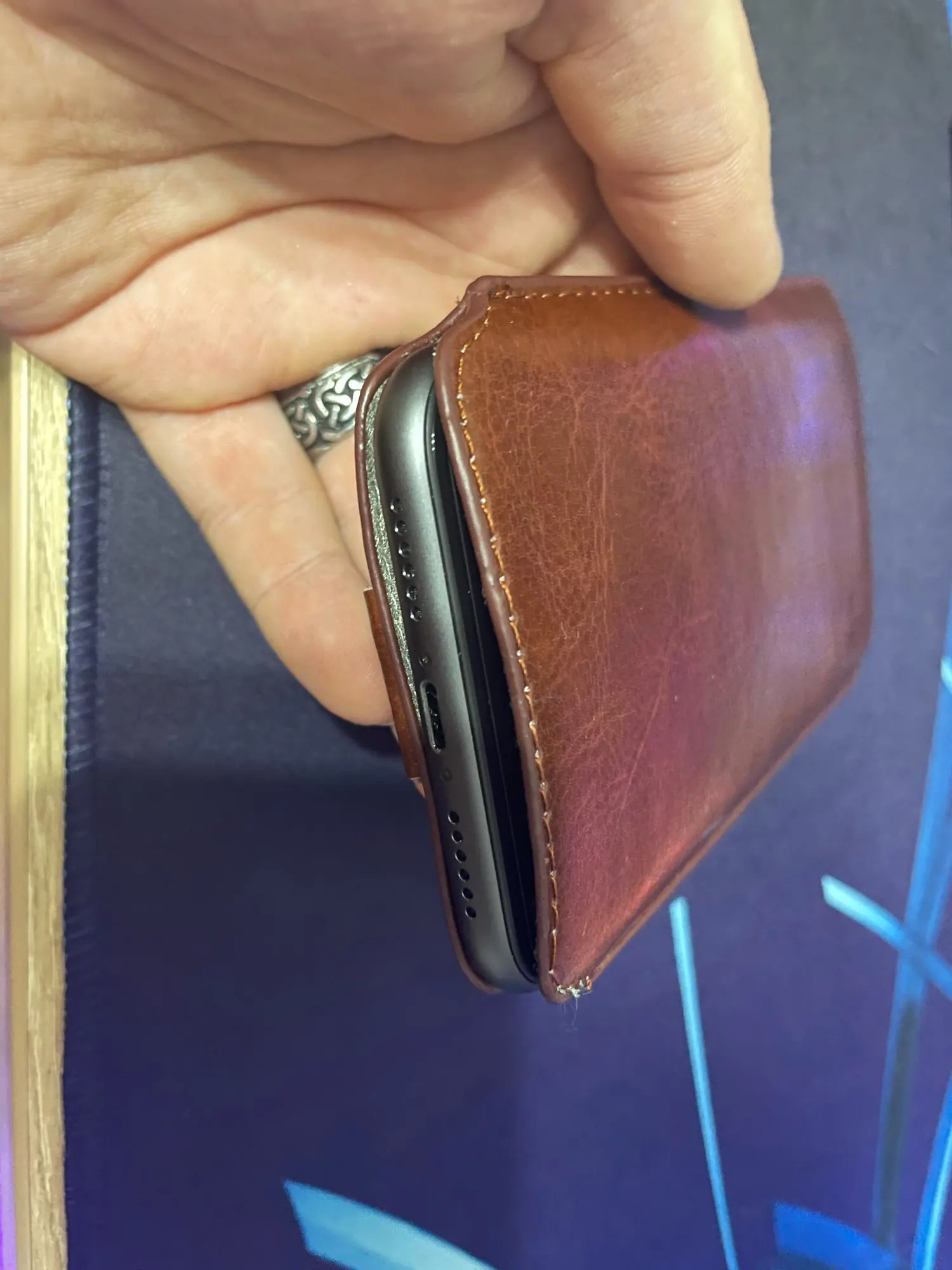 Хороший чехол. Брал на 12 мини. Прям ностальгия за язычок тянут. Сначала показалась большеват но уже привык. Не кожа, слегка жестковатый. Думаю разноситься. достойный материал за свои то 150 рублей. Рекомендую к покупке. Продавцу желаю чтоб начал делать из натуральной кожи, и замши.