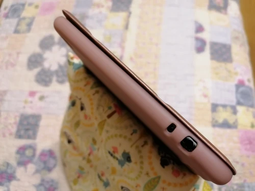 До Москвы шёл месяц. Крышка чехла снаружи - с эффектом софт-тача. Основание жёсткое, но краям упругое - удобно засовывать. Цвет мятный - один в один как на фото. Функция авторазблокировки работает. Немного смущает тонкое соединение крышки и основной части - эксплуатация покажет насколько оно долговечно.