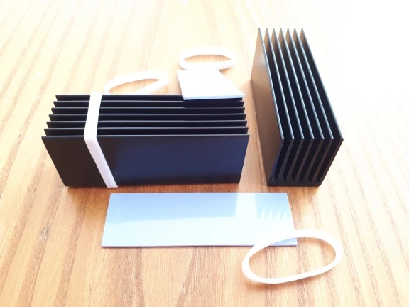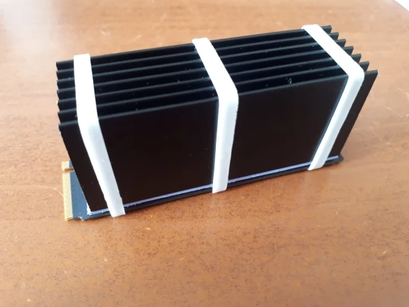 Доставили вовремя, товаром очень доволен. Без радиатора: 46-48 в покое, 56 под нагрузкой, интенсивный обдув (до 100% скорости вентилятора 14см, с дистанции 30см). С радиатором и термопрокладкой продавца: 43-44 в покое, 52 под нагрузкой, слабый обдув (34%). С термопрокладкой ARCTIC 120x20х1.5 mm, 6 Вт/м*К, 3.2 г/см3, ACTPD00014A (подрезал по размеру радиатора): 40-43 в покое, 50 под нагрузкой, без обдува (0%). Tкомнаты = 24. SSD: Samsung 970 Pro 512GB, 970 EVO Plus 2TB. Поверхность радиатора не идеальна: царапины и поперечно вогнутая поверхность. Попутно притёр радиаторы на карбиде кремния до F1000. Фото стадий полировки прилагаю. На мой взгляд дефекты поверхности не критичны, учитывая обязательную термпопрокладку. Стандартная прокладка около 1мм и жестче ARCTIC. При демонтаже старой термопрокладки заметил, что чипы недостаточно хорошо прилегали. Прилагаемые силиконовые резинки слабовато притягивают радиатор, но альтернативы пока не нашёл.