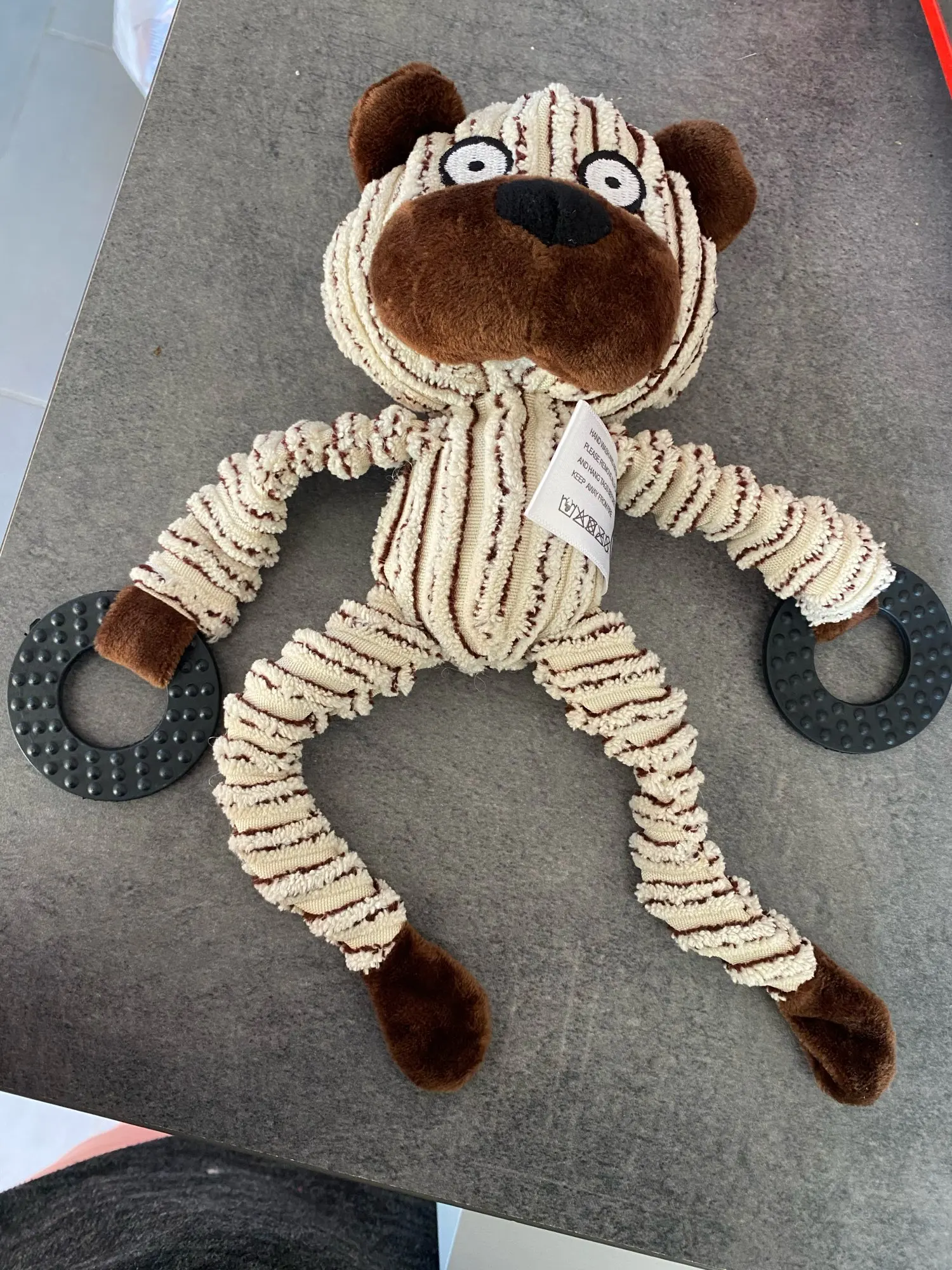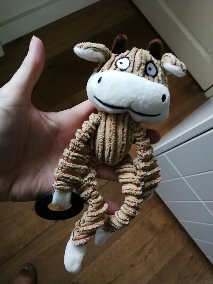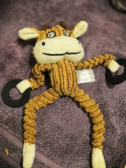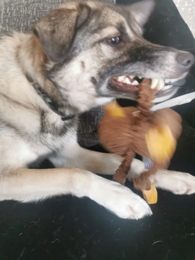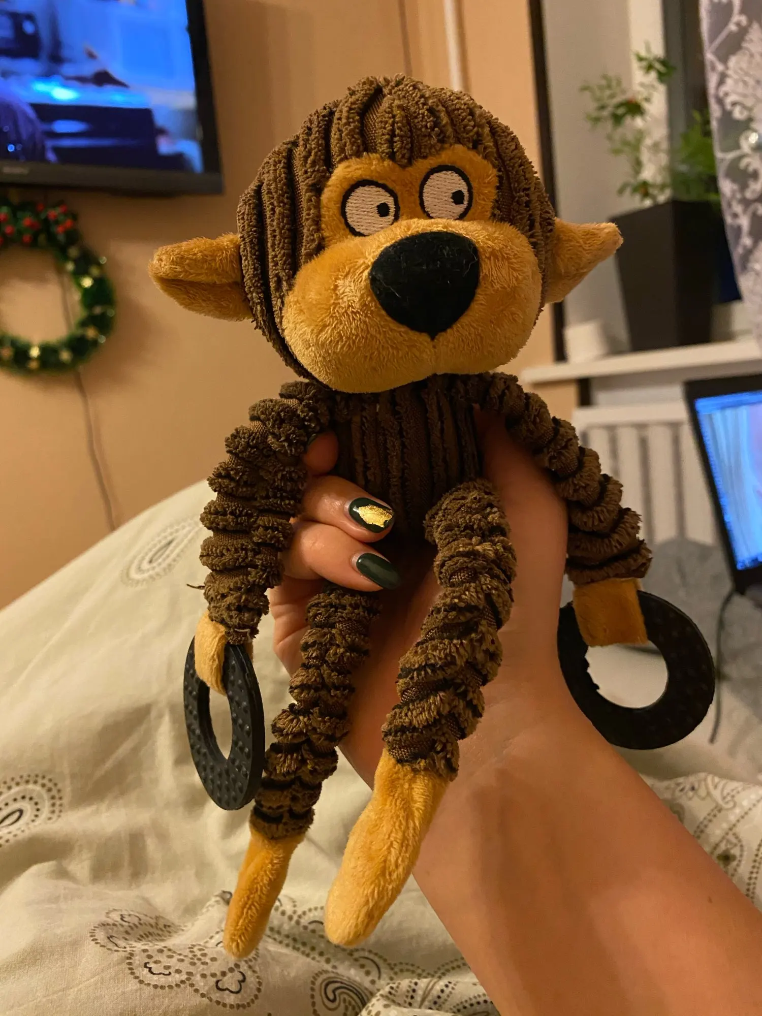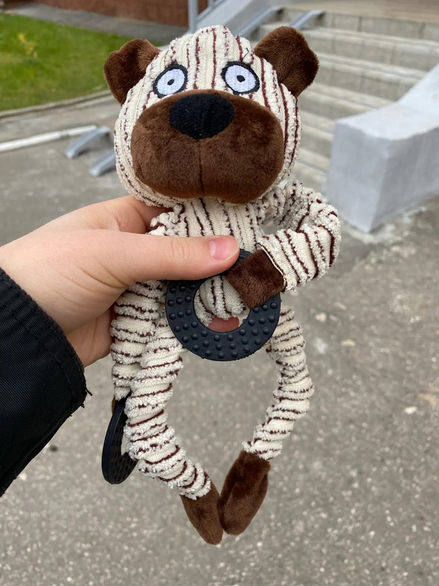 Очень милая пищащая игрушка. Мой пёс просто в восторге, он как маньяк не открывается от нее. Когда я прихожу с работы несётся с ней, мол давай поиграем. Таких разных буду заказывать ещё. Я очень рада, что она ему нравится!!! Спасибо продавцу большое! Всем удачи и добра✨✨✨