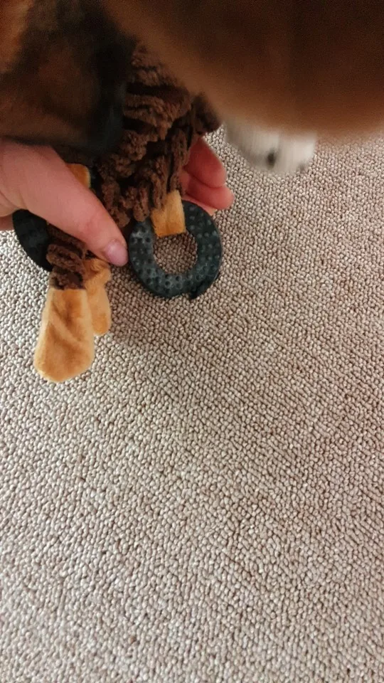 Думала будет побольше игрушка, прикольная, но биглю пол года хватило на минут 10 чтобы съесть кольца и разорвать нос