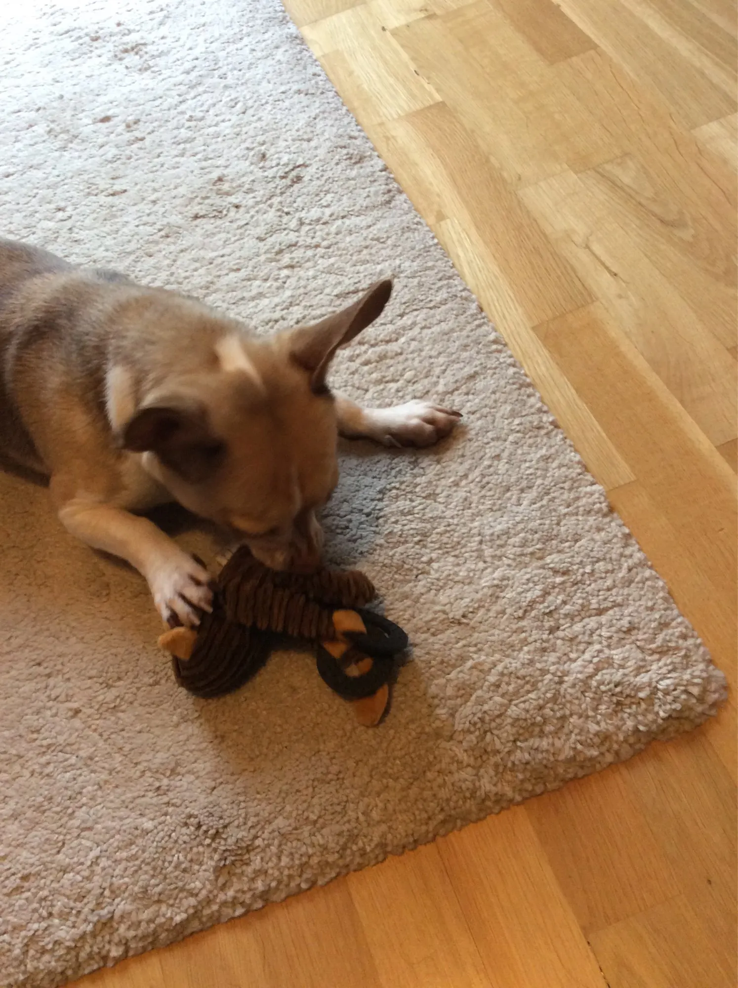 игрушка хорошая, плотная, для йорка мини-самое оно! для не больших собачек.