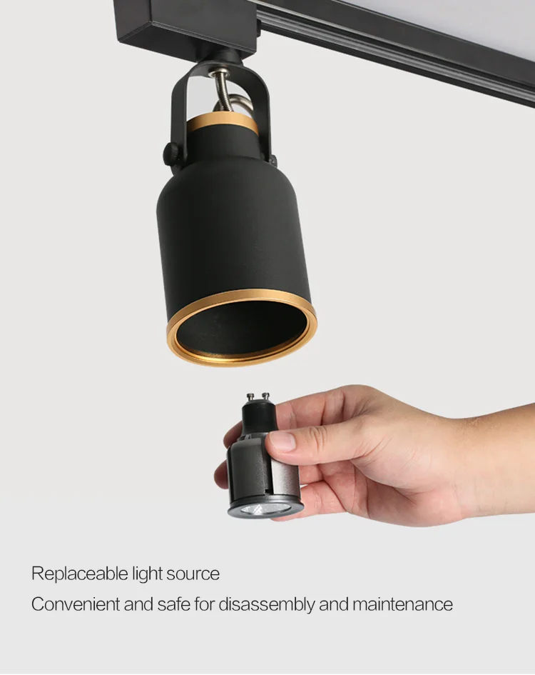 1. Закрепите трек на бронировании2. Подключите домашние провода к источнику питания на корпусе лампы3. Вставьте держатель лампы в дорожку с помощью переключателя застежки4. Установлен
