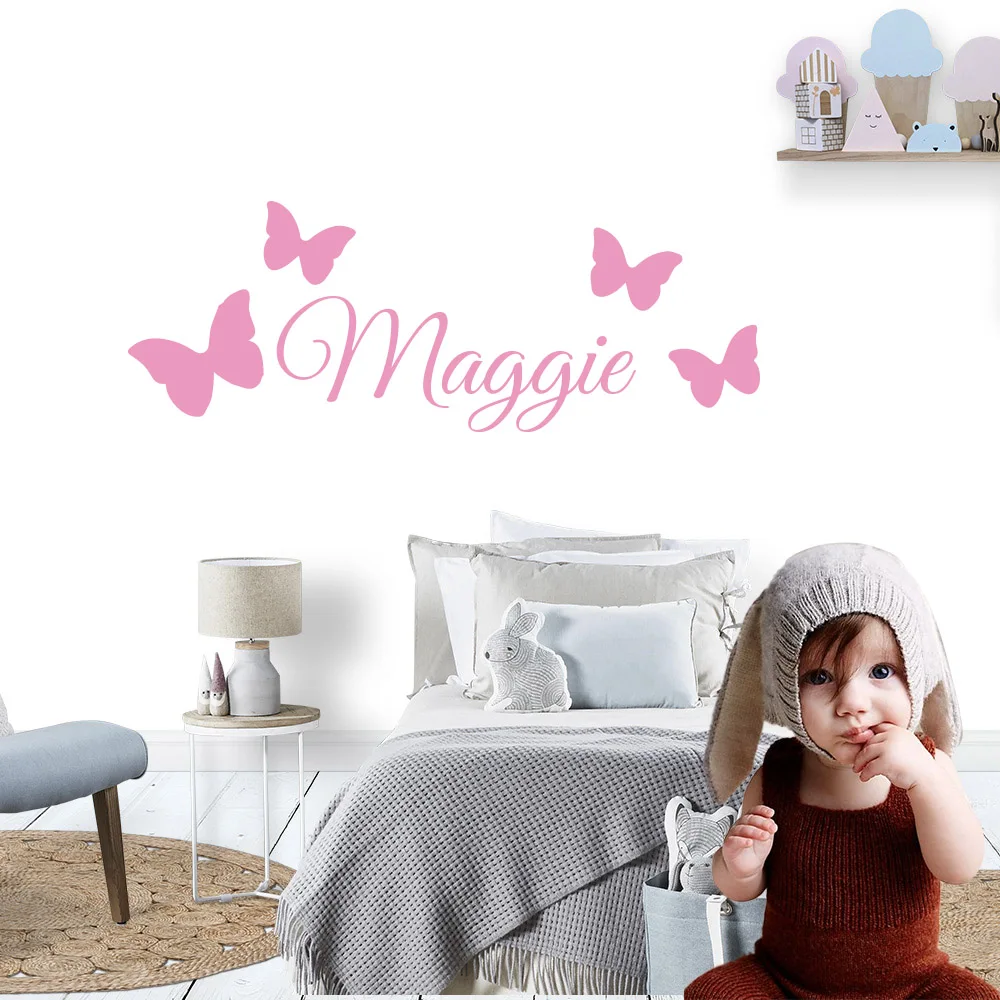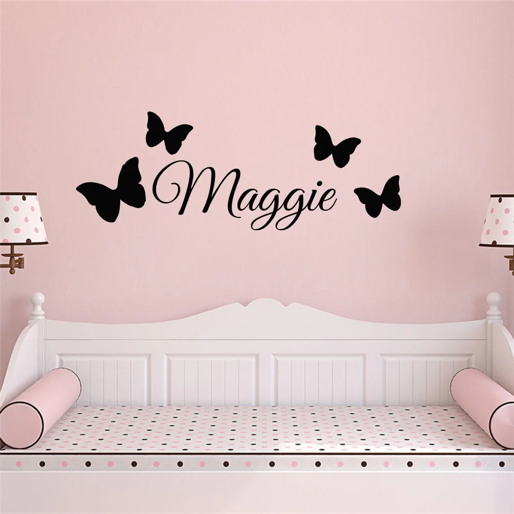 Персонализированный виниловый настенный стикер с именем бабочки для детской комнаты, Украшение стен для девочек, декор для детской спальни, обои