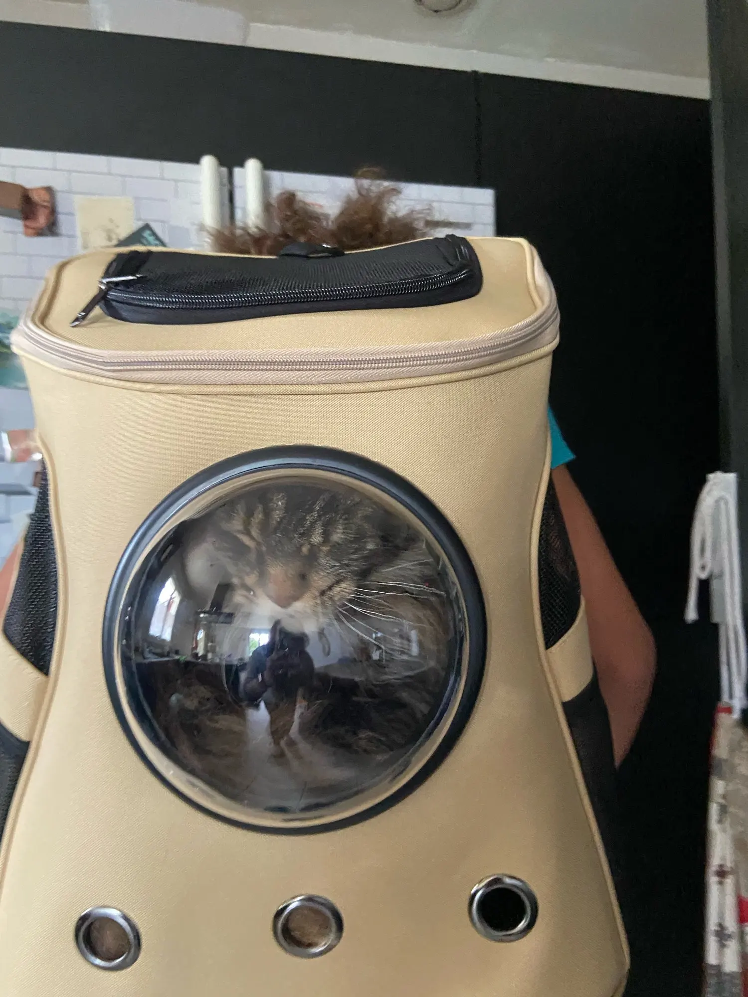 Абсолютно блестящий рюкзак. Купол немного тонкий, но помимо этого я не могу жаловаться на его качество. Имеет сильный запах Востока, но определенно исчезнет через пару дней. Мой 4кг 8 месяцев Бенгальский любит его-первый раз, когда он был доставлен в него, он сразу же начал мурлыкать. Определенно рекомендую.