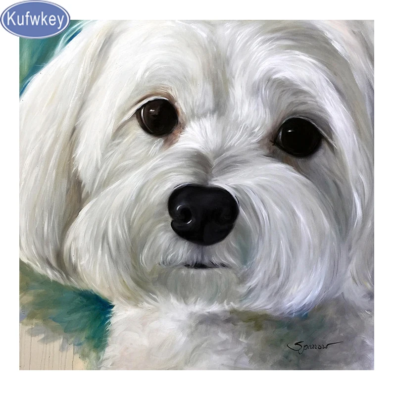 Картина 5D "сделай сам" с мальтийскими животными, квадратная Алмазная вышивка, милый питомец, декор рукоделие с мозаичными бриллиантами