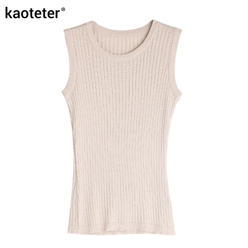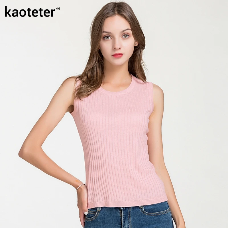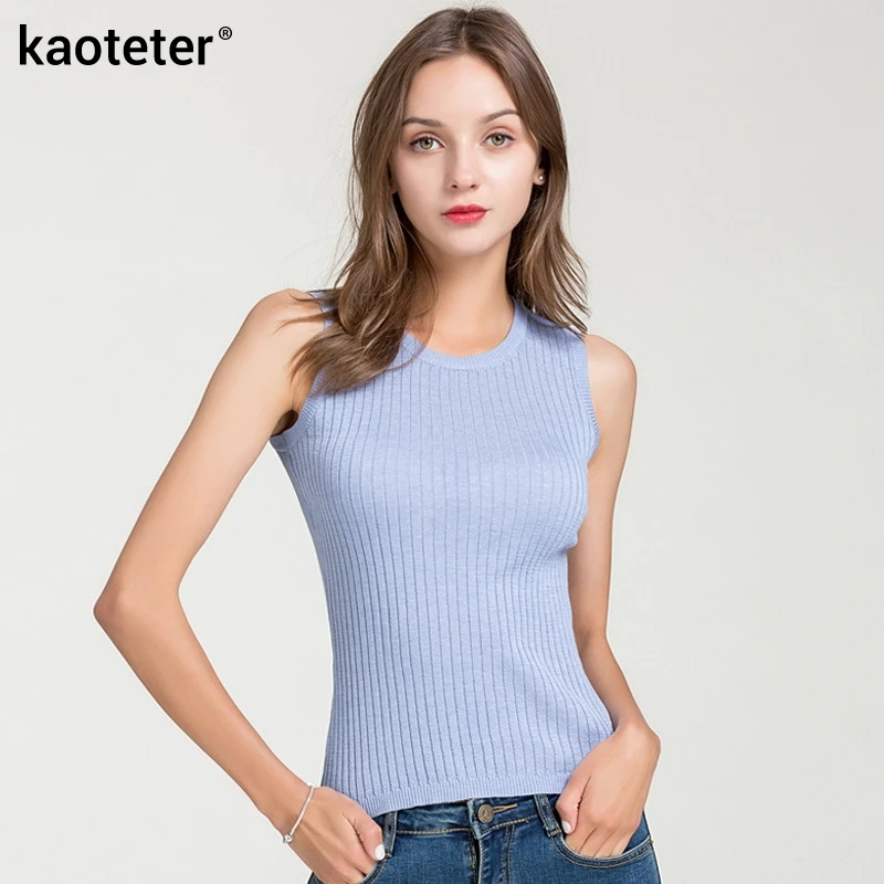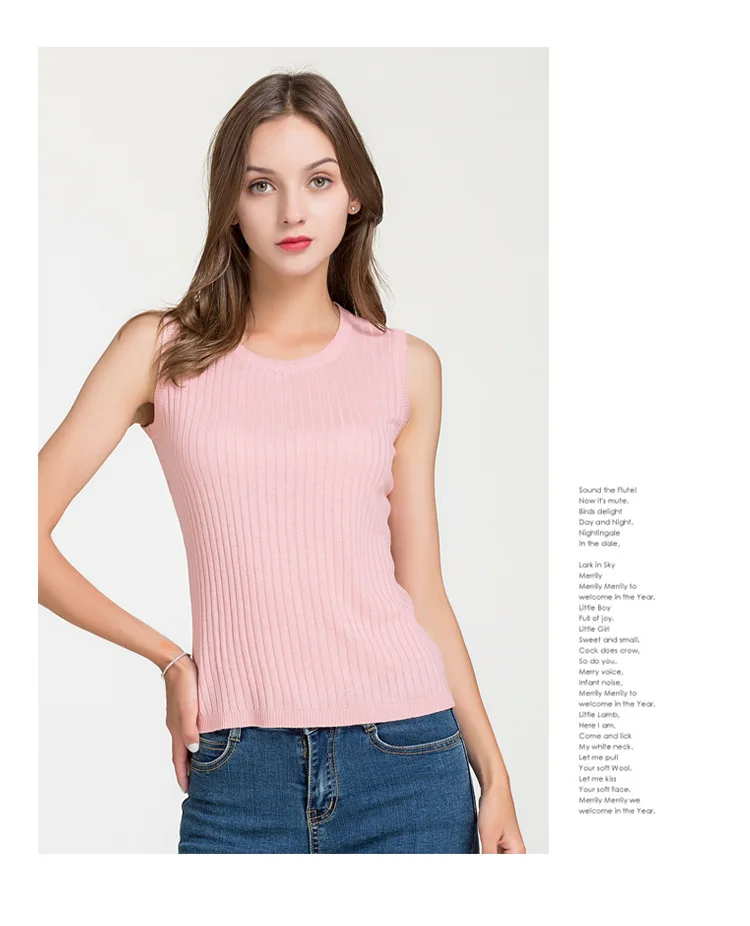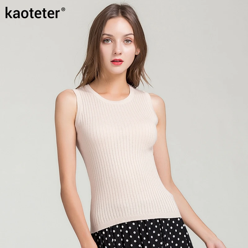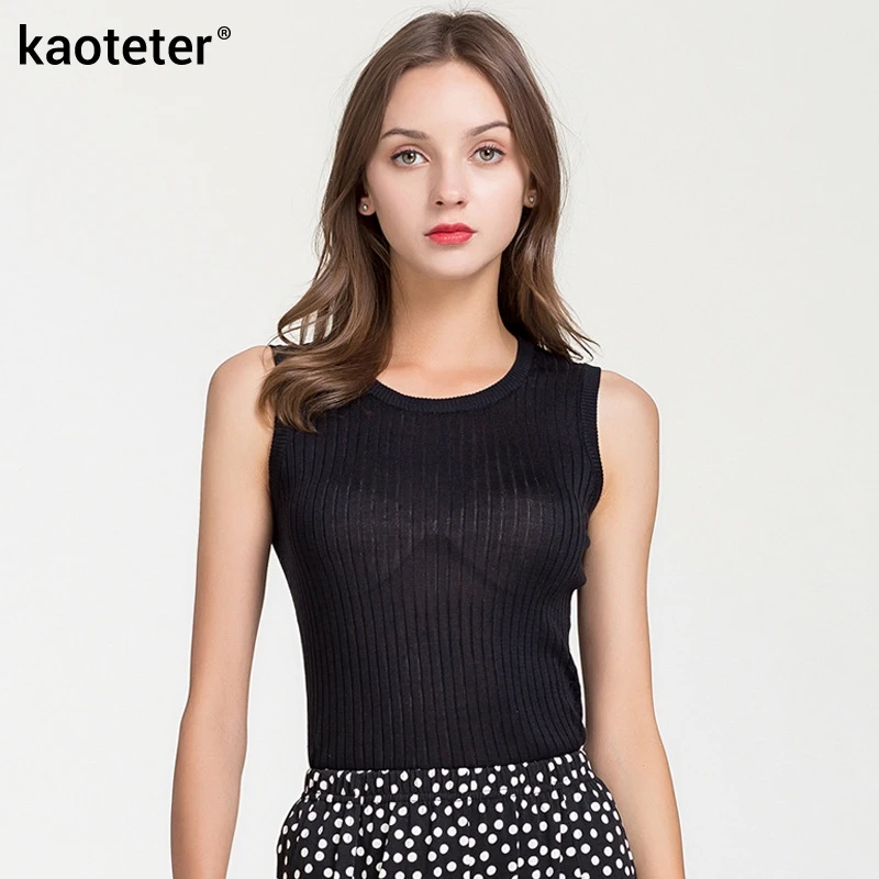 70% шелк 30% хлопок Женский женские майки, топы с круглым вырезом Шелковый вязаный Плетеный женский тонкий офисный Модный женский жилет майка Топ