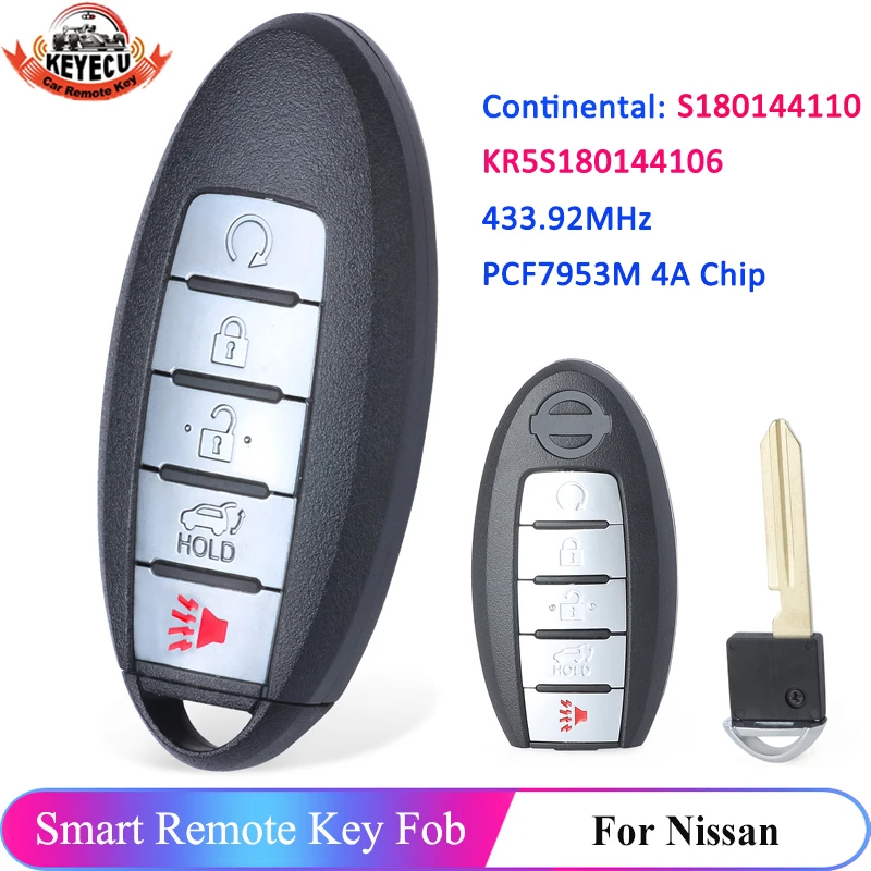 5-кнопочный БЕСКЛЮЧЕВОЙ пульт дистанционного управления KEYECU S180144110 для Nissan Rogue 2017 2018 2019 2020 433,92 МГц 4A чип Автомобильный смарт-Брелок дистанционного управления KR5S180144106