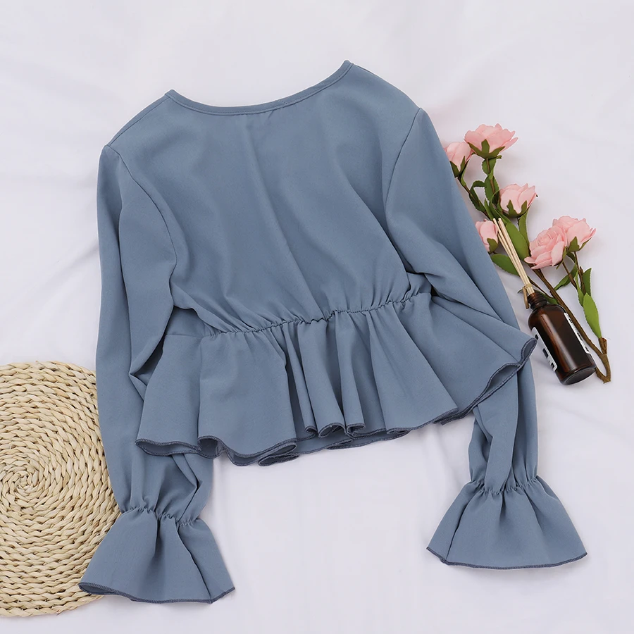 Женская шифоновая блузка с круглым вырезом и расклешенными рукавами, базовая винтажная короткая облегающая кардиган с завышенной талией, плиссированная блузка на пуговицах, на лето