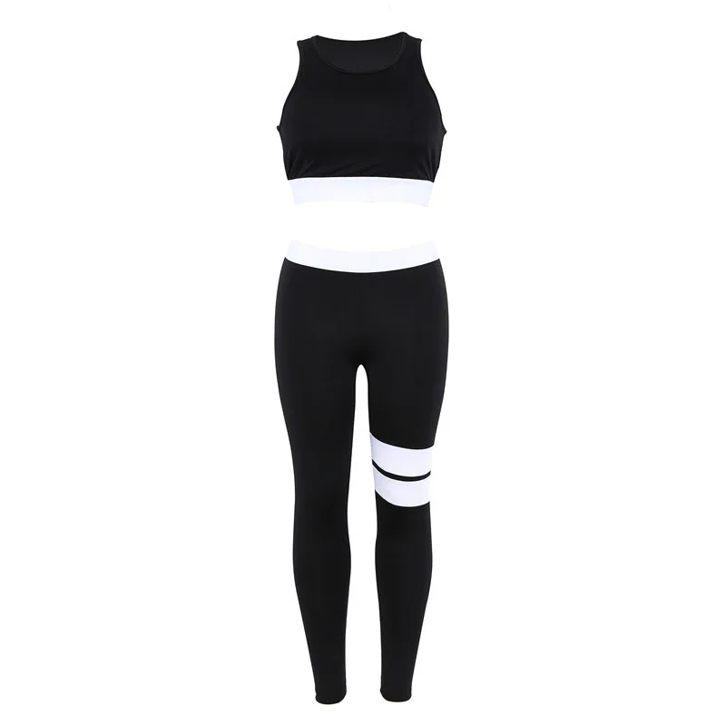 Женский костюм-двойка, укороченный комплект с леггинсами в полоску из полиэстера, повседневный клубный костюм, спортивные костюмы, 2019