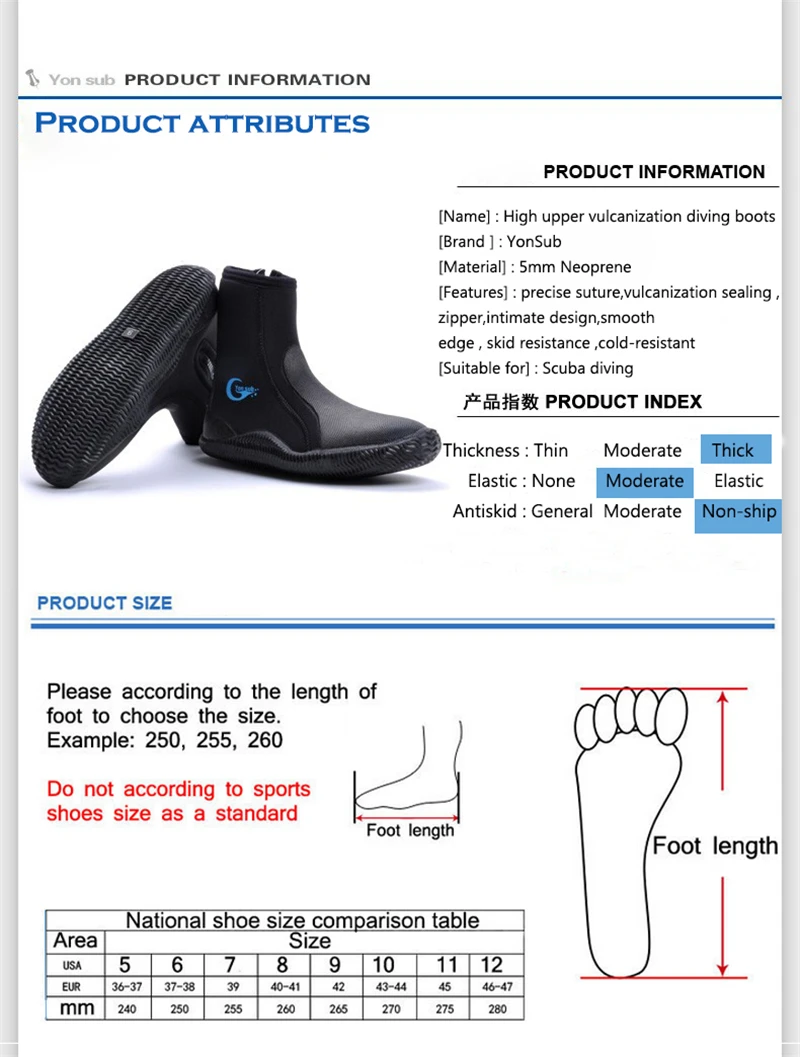 Неопреновые сапоги для подводного плавания YONSUB 5 мм с высоким ве...