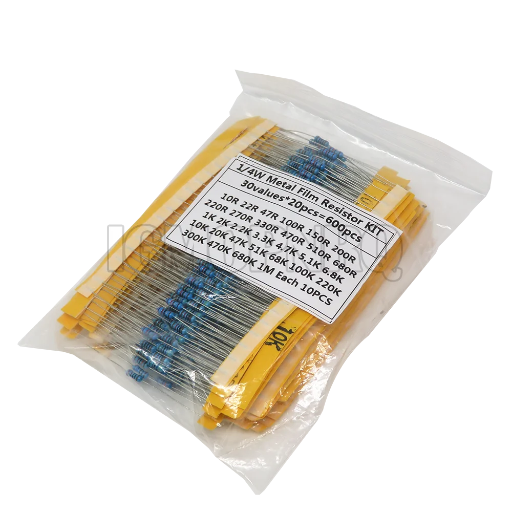 Получил резисторы в упаковке через 50 дней в Чехию. Стандартная конструкция, но хороший набор различных значений. Каждая полоса маркируется restistance. Спасибо!
