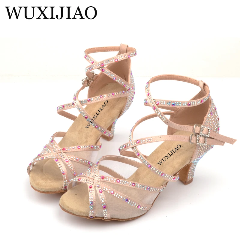 Женские танцевальные туфли WUXIJIAO, черные, фиолетовые, бронзовые, полные стразы, для сальсы, латинских танцев, сальсы, обувь для взрослых