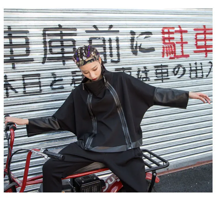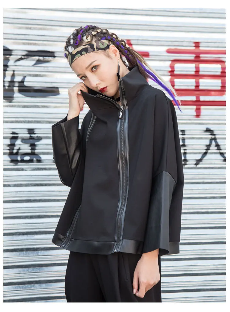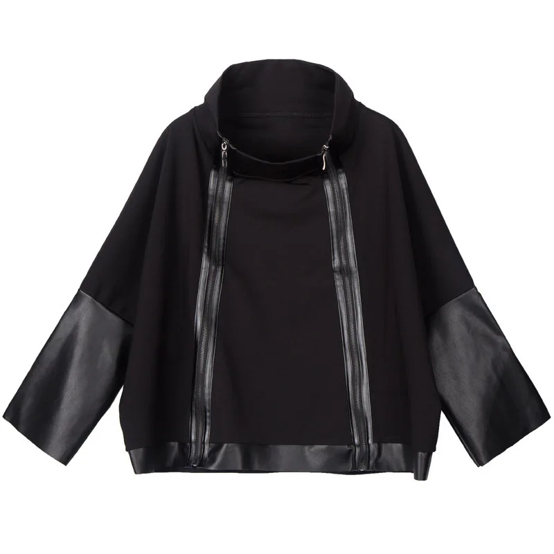 Куртка женская кожаная Max LuLu, черная, на молнии, с высоким воротником, в Корейском стиле